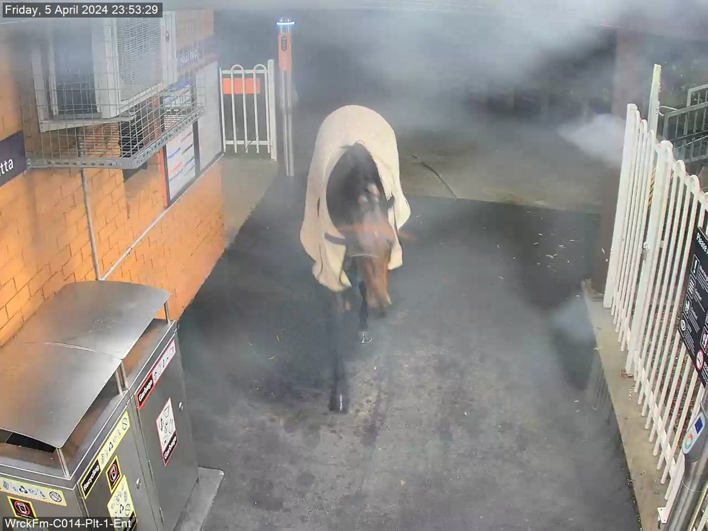 Calul fugise dintr-un ţarc și a ajuns în stația Warwick Farm cu 7 minute înainte de miezul nopții, vineri, 5 aprilie, potrivit Mirror.