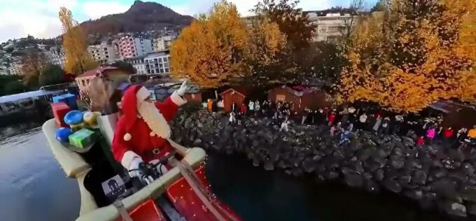 Chiar dacă nu este încă Ajunul Crăciunului, Moșul pare să își testeze sania. A fost surprins zburând deasupra Lacului Geneva, survolând apoi unul dintre cele mai populare târguri de Crăciun din zonă, cel de la Montreux.