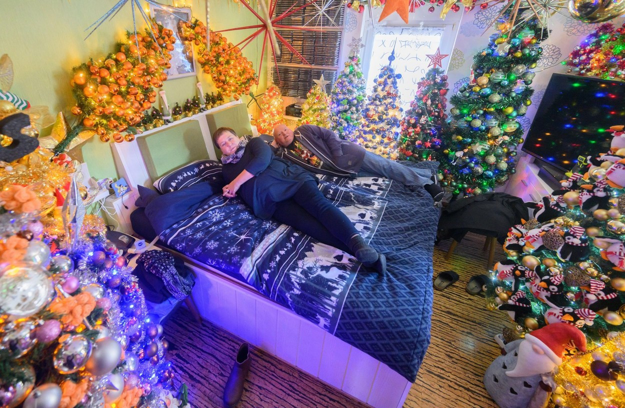 O familie a împodobit în casă 555 de brazi artificiali. „Ca să avem mai mult spațiu, am mai construit o cameră” | FOTO