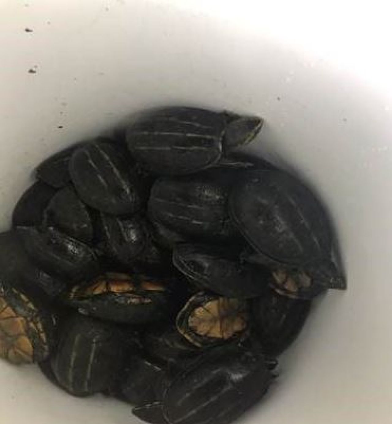La inspectarea maşinii, poliţiştii au descoperit şi 40 de broaşte ţestoase Kinosternon baurii, o specie endemică din sud-estul SUA. Mai multe imagini găsiți în galeria foto din acest articol!