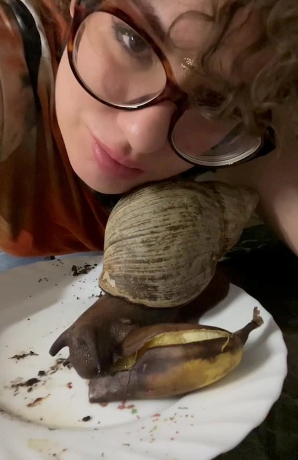 Kris Buckley are o fermă cu peste 5.000 de melci africani uriași, o specie a cărei cochilie poate măsura chiar și 23 de centimetri, relatează The Sun.