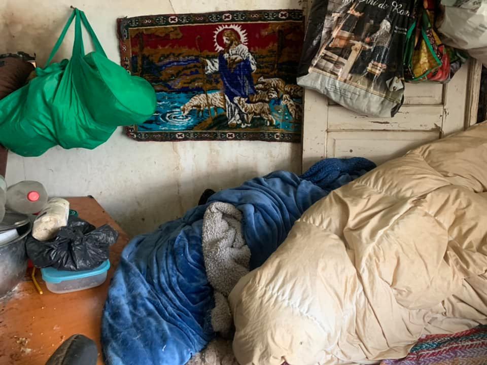 ”Urina și-o strânge în sticle de plastic, iar celelalte nevoi și le face în pungi. Alături de ea trei câini. Nici ei n-au coborât din pod de vreo trei ani. Tot acolo își fac și ei nevoile.