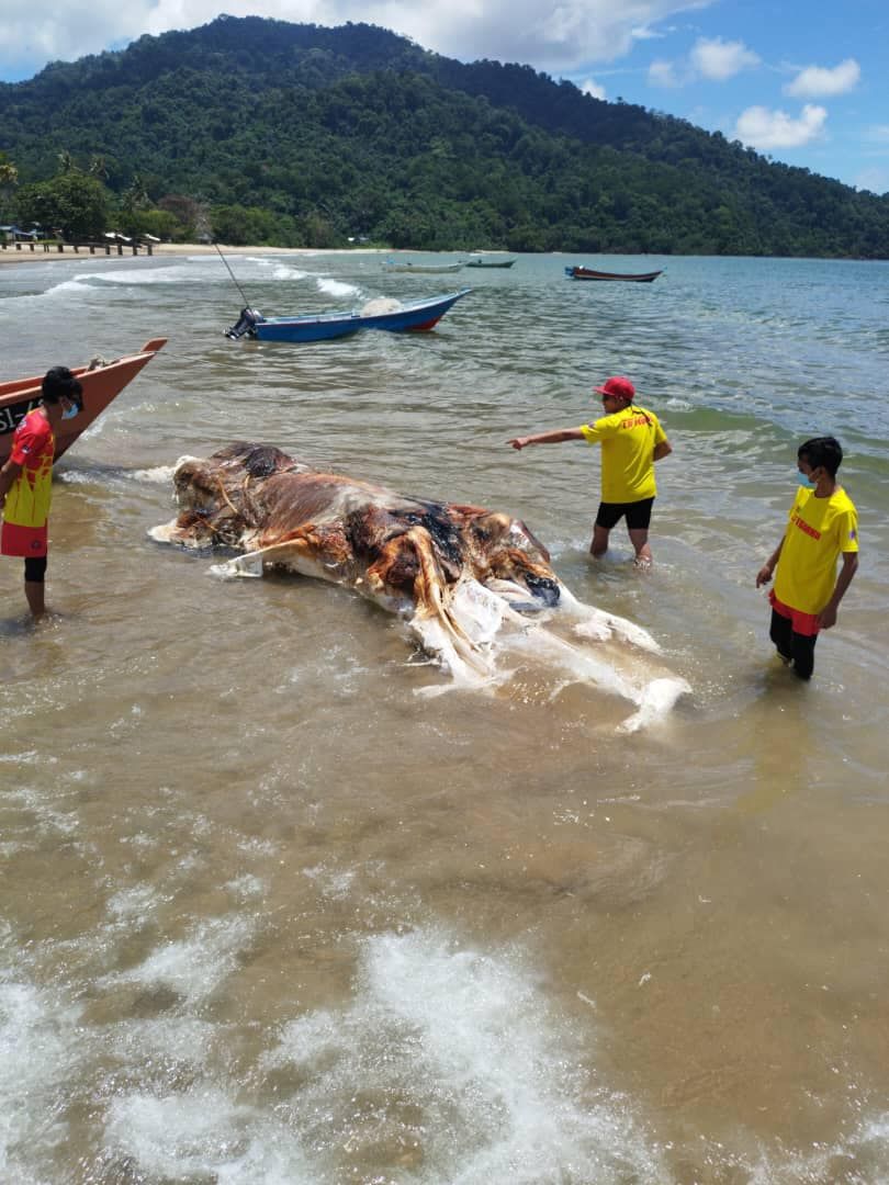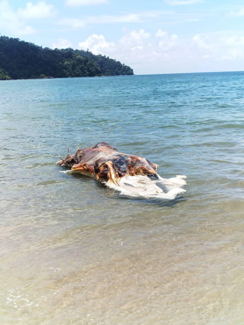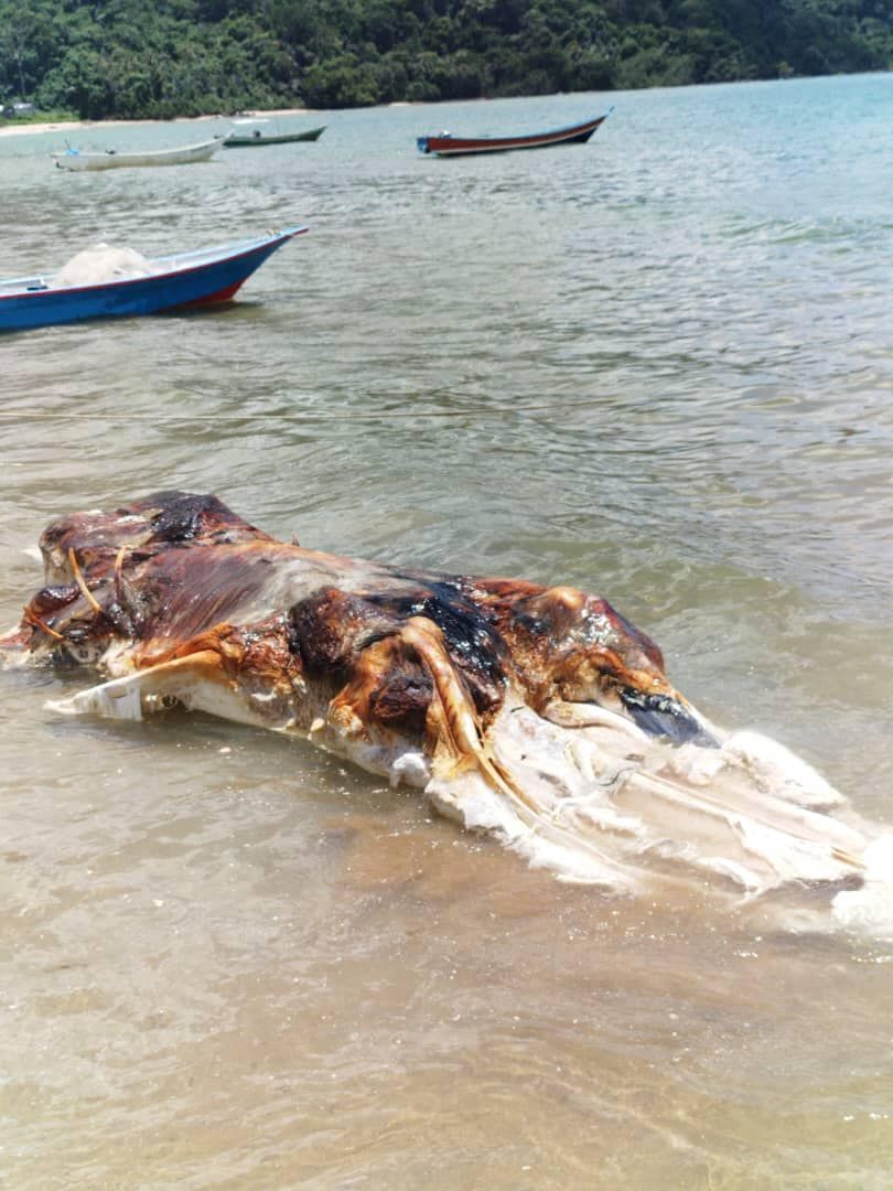 Autoritățile cred că ar putea fi vorba despre rămășițele unei balene. Descoperirea a fost făcută pe plaja Telok Melano, vinerea trecută.
