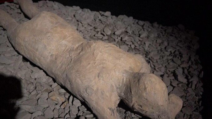 Filip Petcu, manager Muzeul Național de Artă Timișoara: „Avem, în premieră, iată, un mulaj, așa-zis mulaj Fioreli, o descoperire care a fost inițiată de marele arheolog, directorul muzeului de la Napoli, care în anul 1860 a injectat ghips în golurile produse în interiorul cenușei pietrificate și, practic, a reușit să obțină un pozitiv.”
