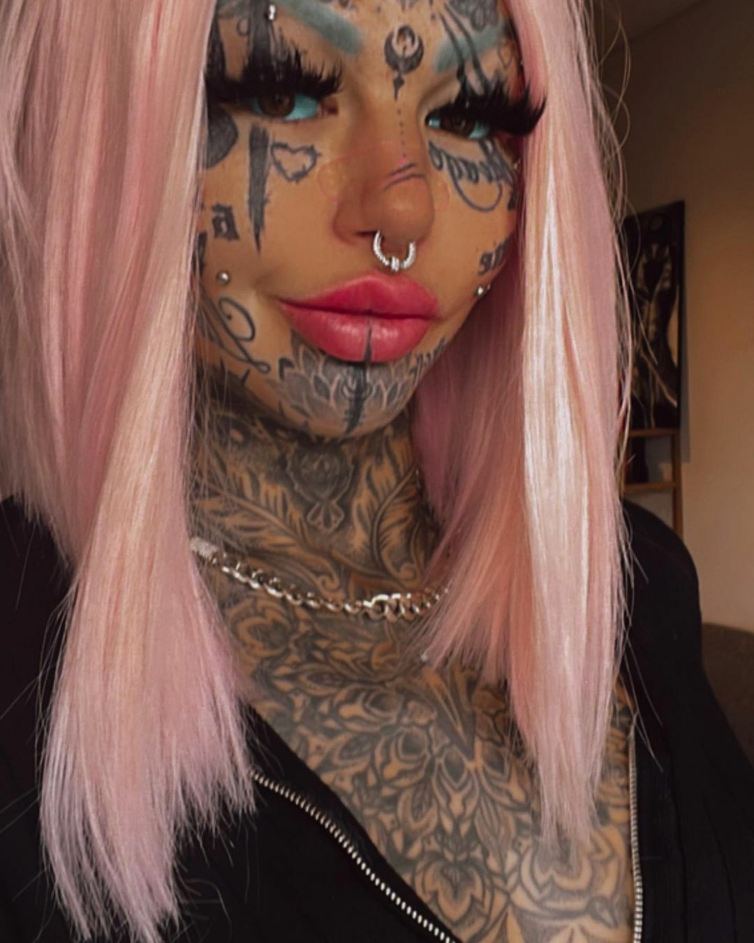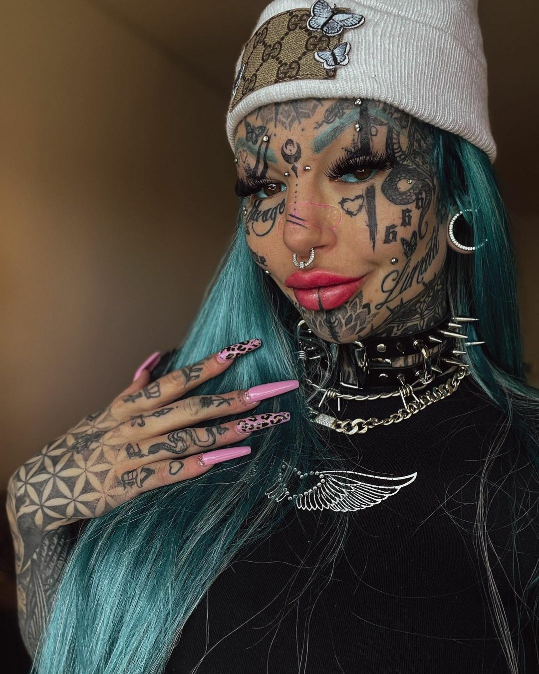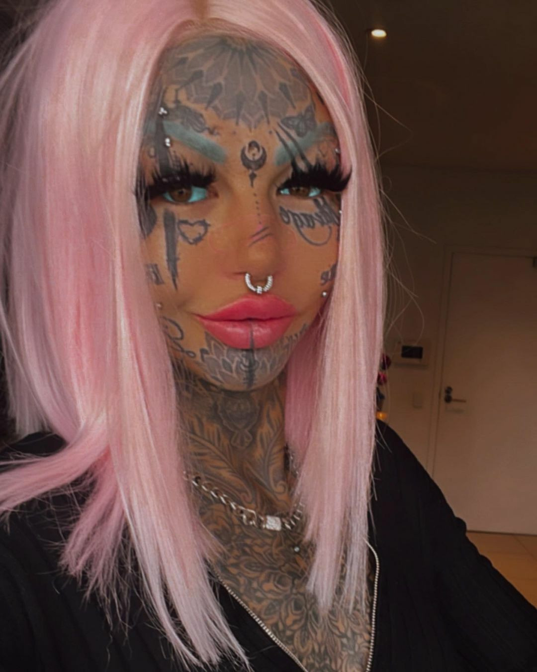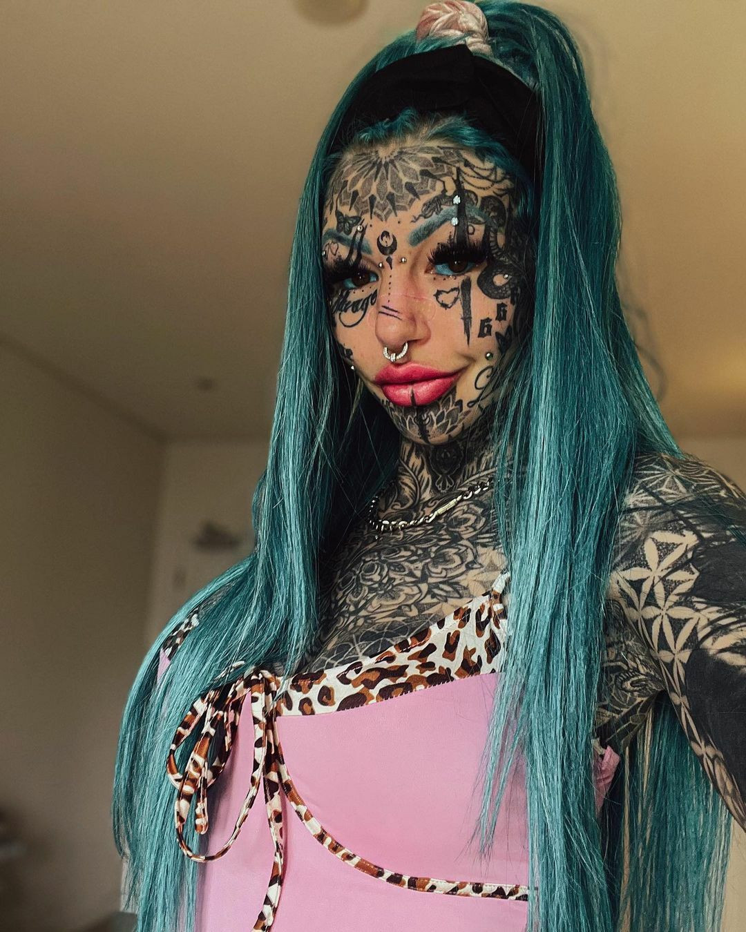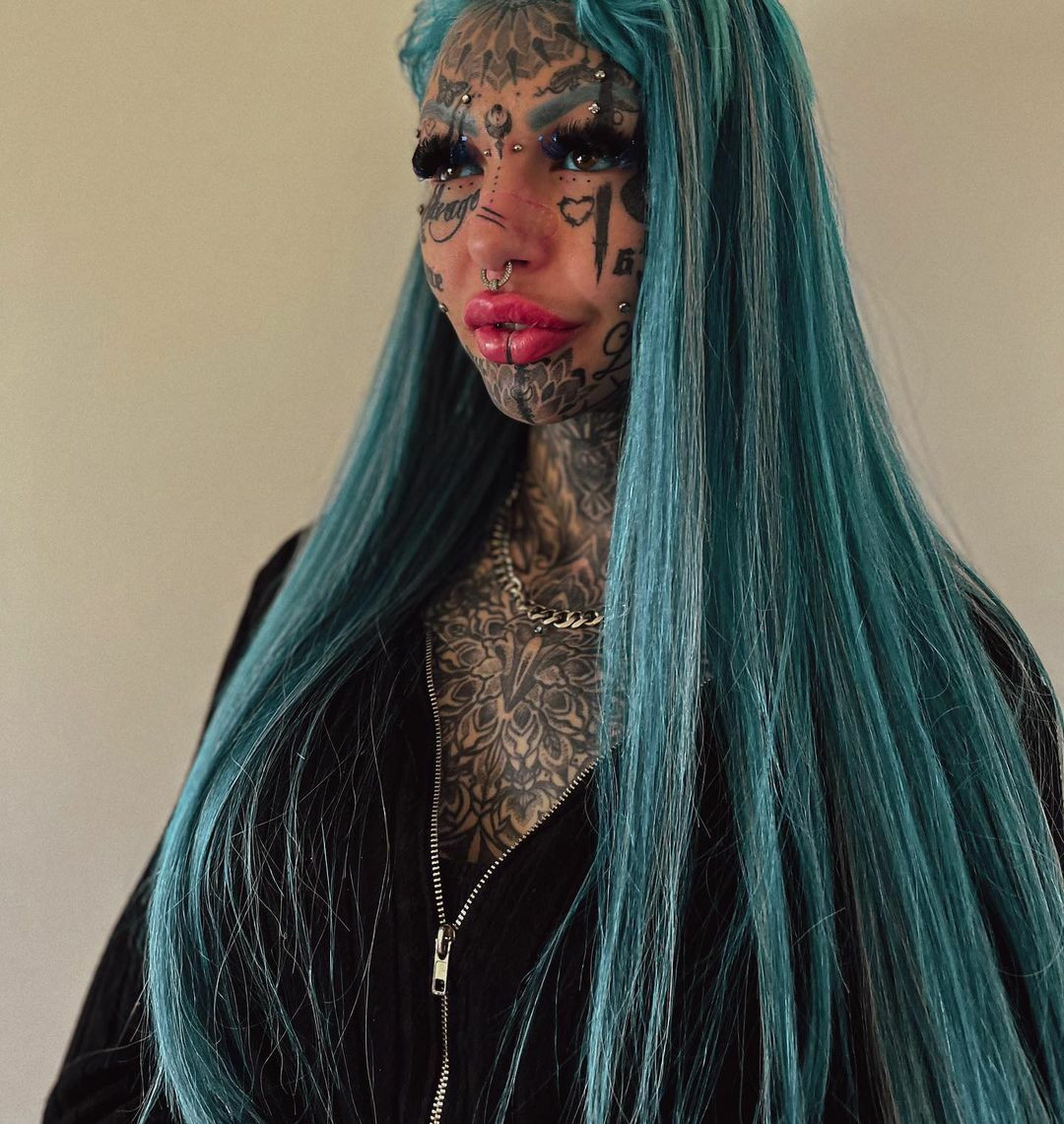 Amber Luke și-a făcut în total peste 600 de tatuaje. Transformarea a durat șapte ani, timp în care a avut convulsii și a suferit de orbire temporară.