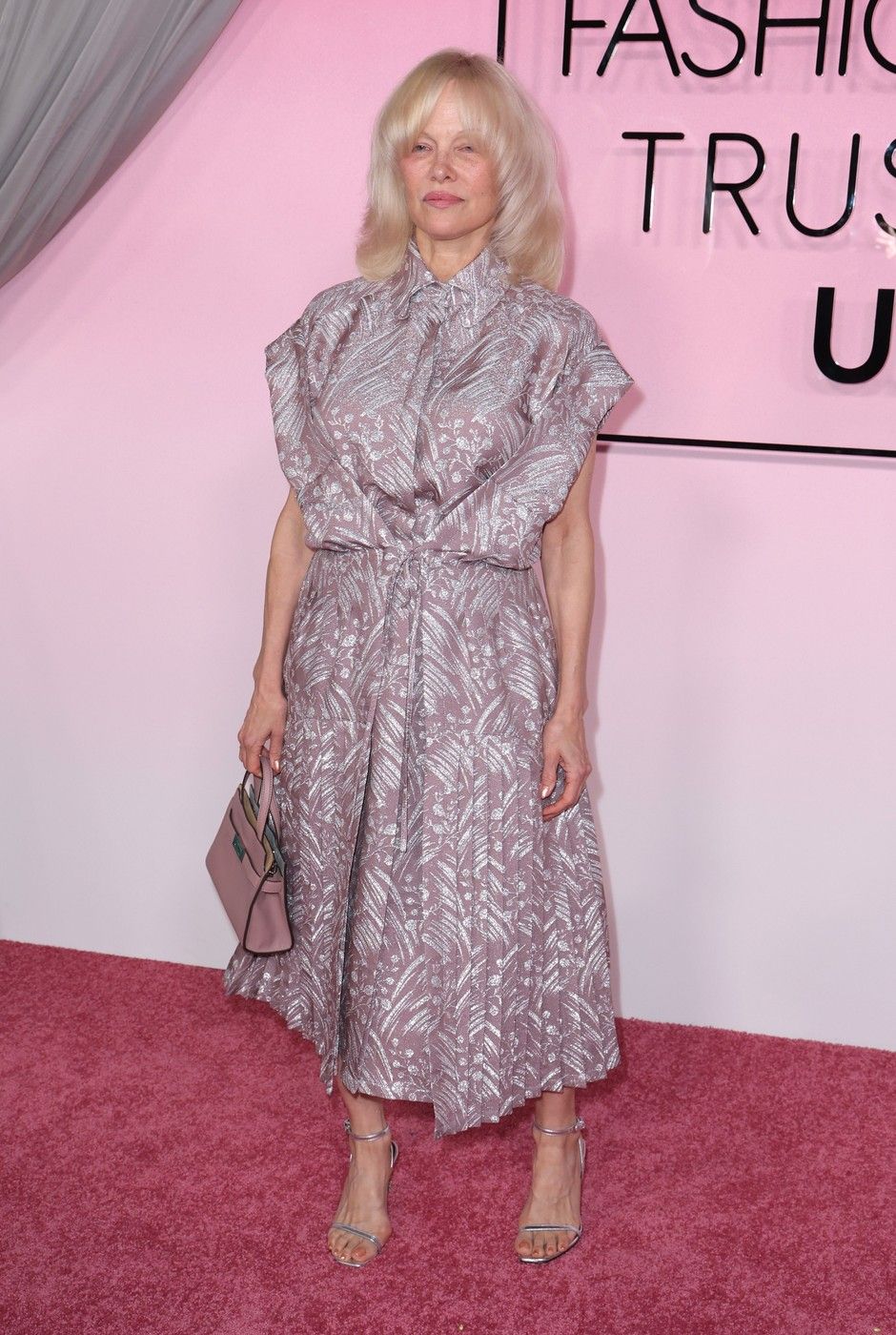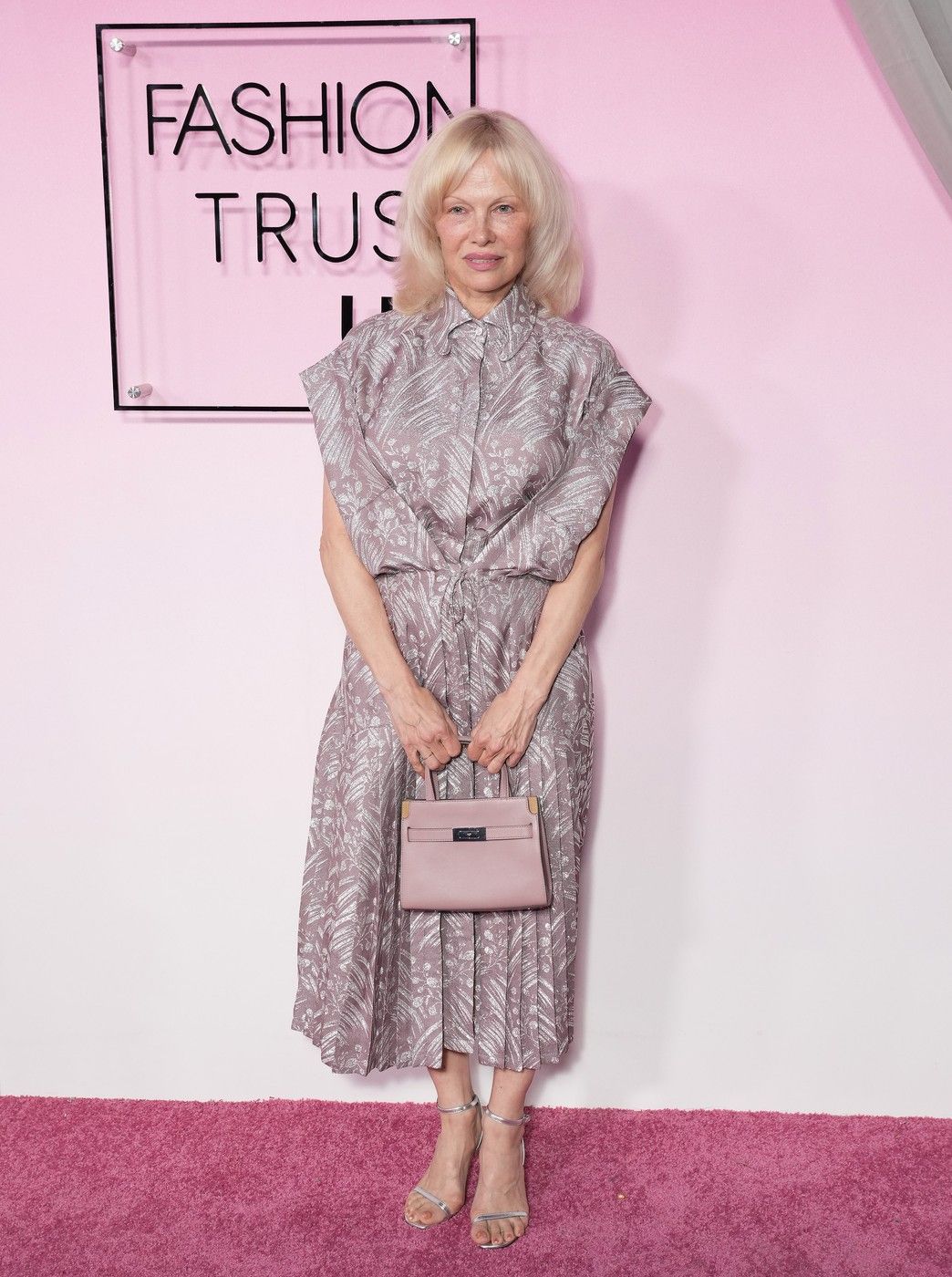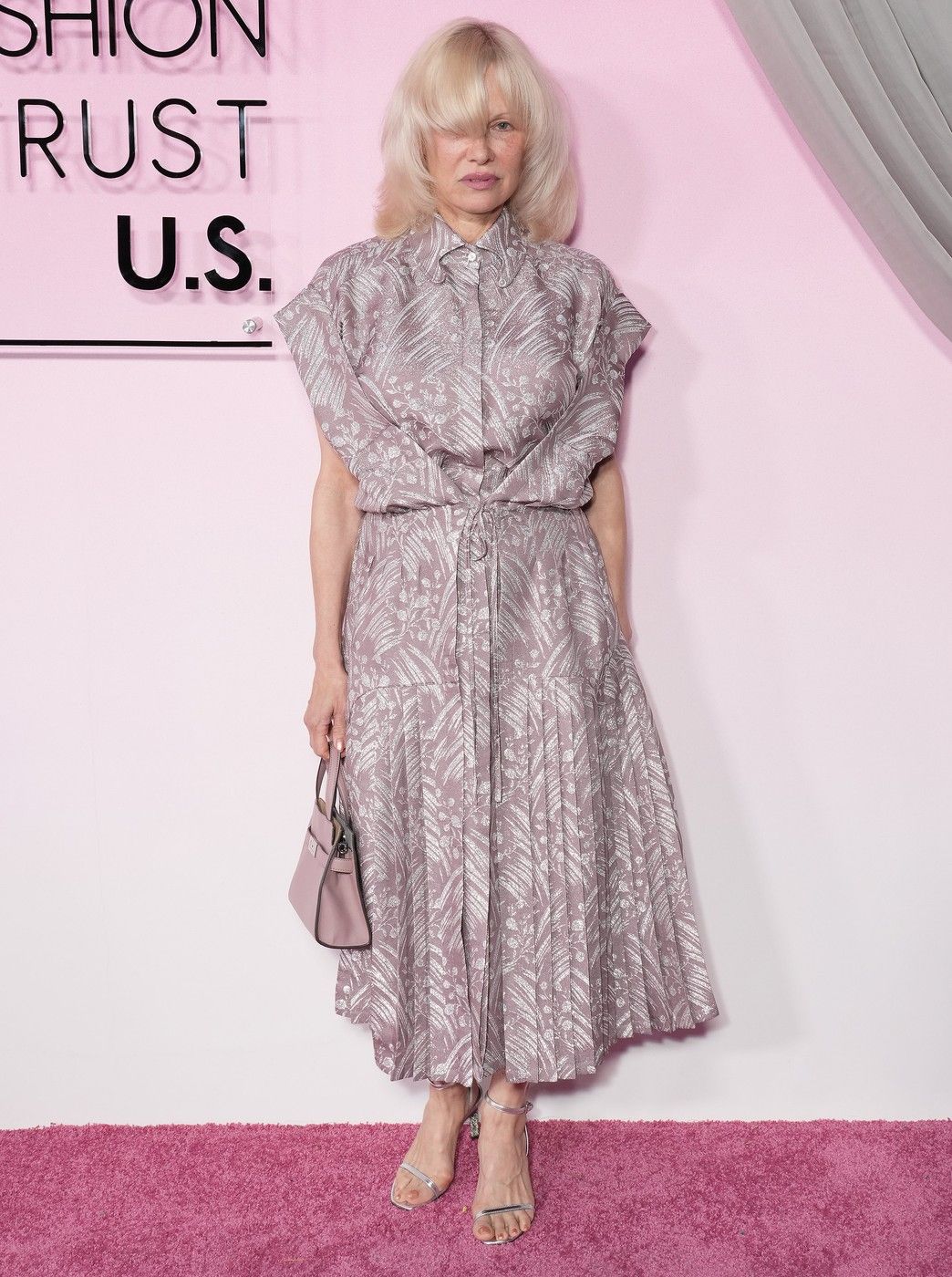 Pentru eveniment, Pamela a purtat o rochie în nuanță de mov pal, cu imprimeu floral argintiu, completată de un detaliu elegant în față și mâneci ample. Ținuta a fost accesorizată cu o geantă mini Hermès Birkin, într-o nuanță delicată de roz.