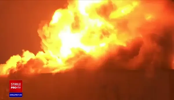 Incendiul a putut fi observat de la câțiva kilometri distanță. Misiunea pompierilor este una extrem de dificilă pentru că o bună bucată din acest depozit s-a prăbușit deja.