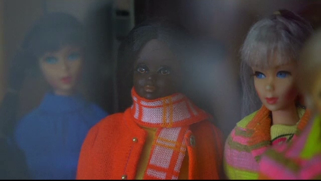 „Acestea sunt păpușile mele favorite. Iată epoca Mod. Aceasta e Barbie, cu prietena ei Stacey și sora mai mică, Skipper. Toți fac parte din familia Barbie.”