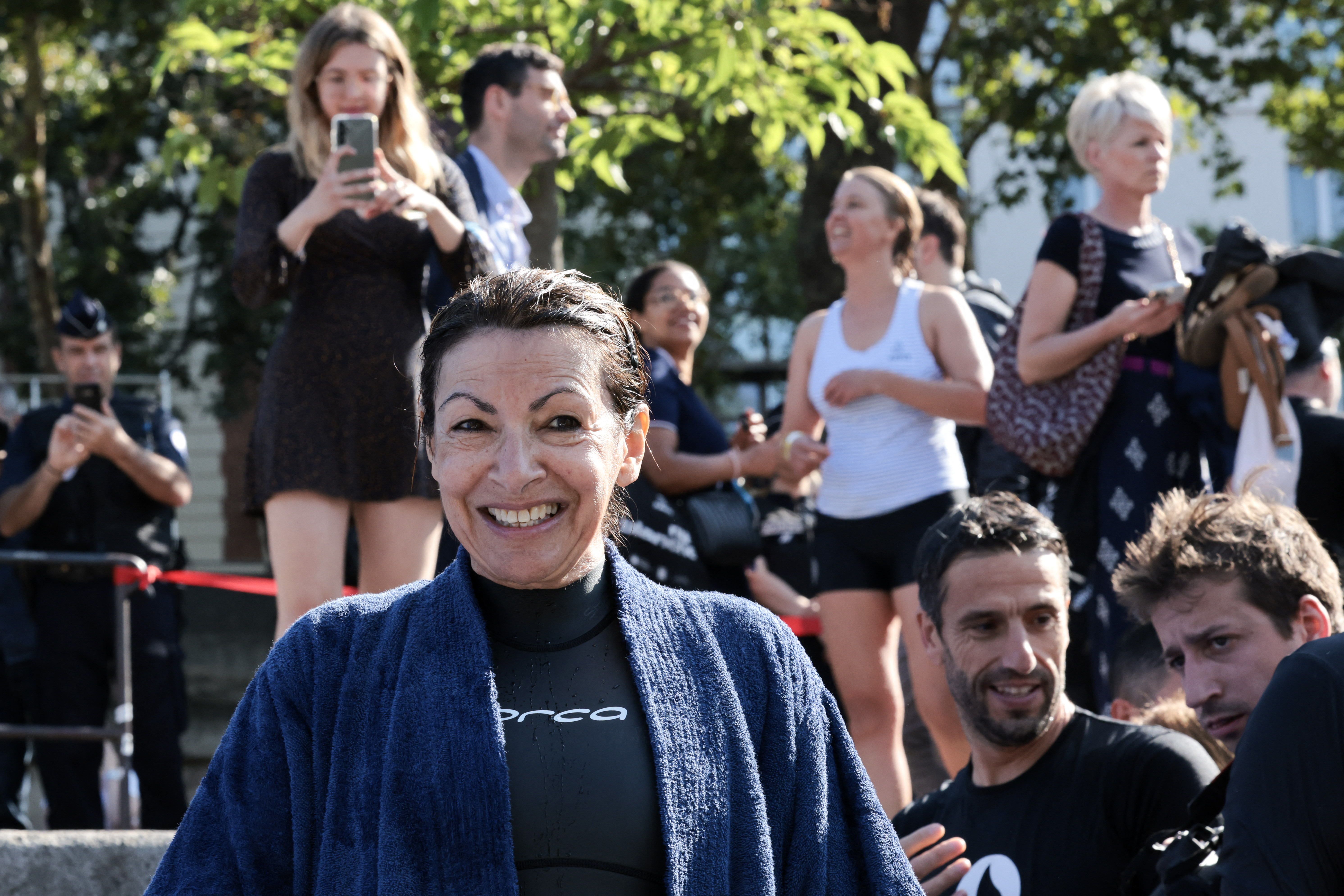 Ea s-a scăldat în Sena alături de preşedintele Comitetului de Organizare al Jocurilor Olimpice, Tony Estanguet.
