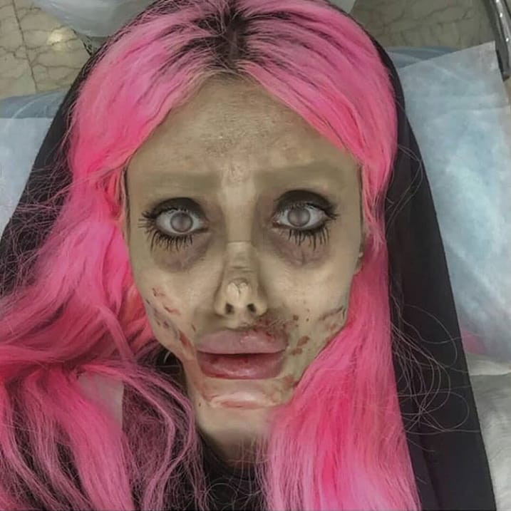 Înainte de a fi arestată ea a uimit lumea cu imagini despre care oamenii spuneau că o fac să pară fie un zombie, fie actrița Angelina Jolie. Se spunea că în 2017 ar fi suferit 50 de operații estetice pentru a semăna cu Angelia Jolie. Dar se pare că totul era fals.