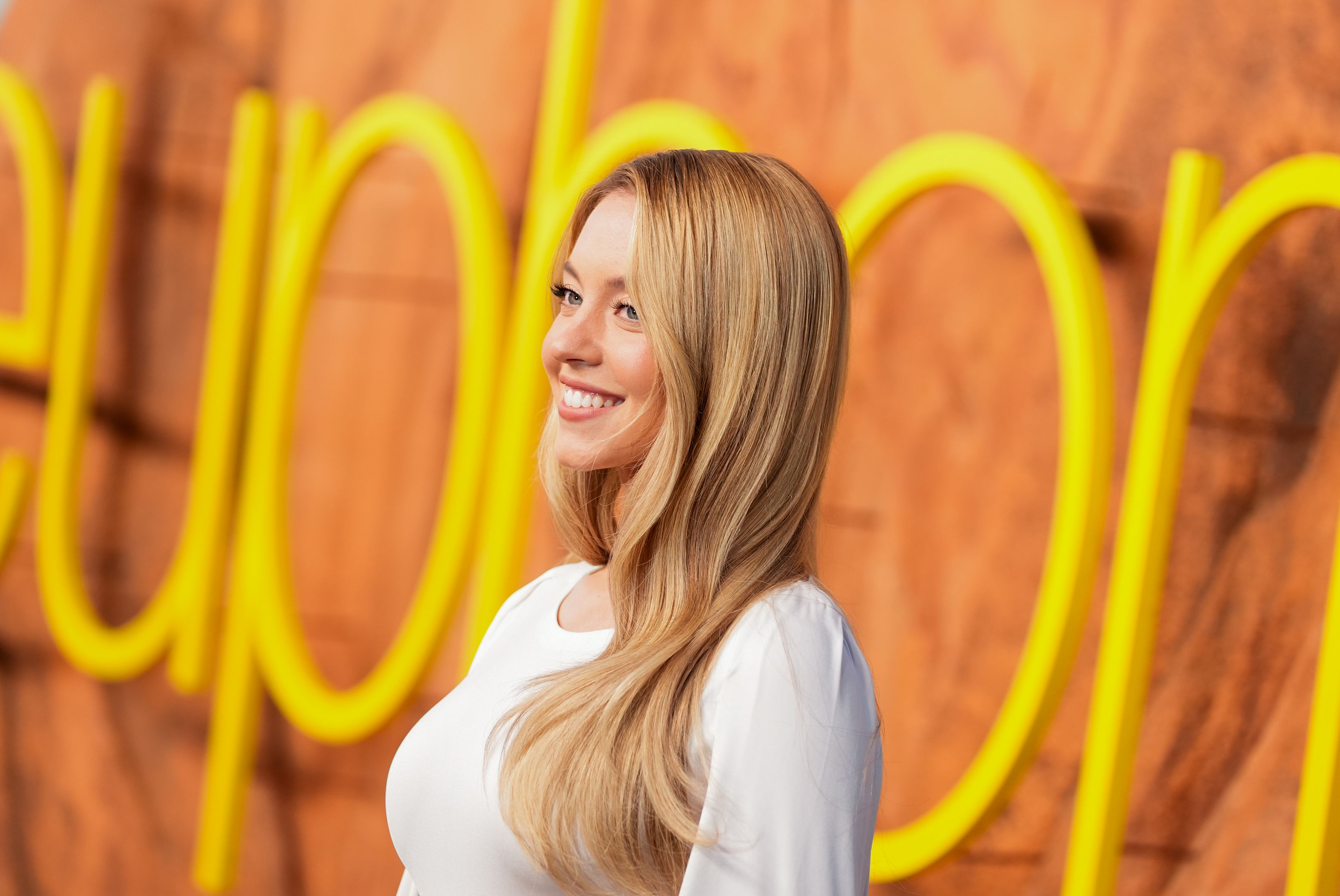 Sweeney a accesorizat ținuta cu bijuterii simple și o pereche de pantofi aurii. Și-a purtat părul blond desfăcut, în bucle lejere și naturale.