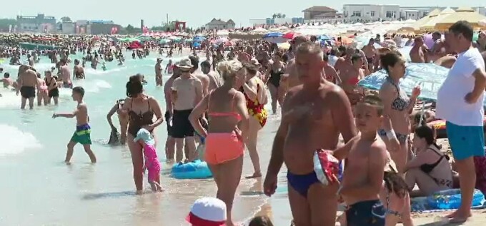La orele prânzului, plaja din Eforie era arhiplină. Deși indexul UV era 9 din 11, iar recomandarea medicilor este să nu ne expunem la soare, turiștii au riscat.