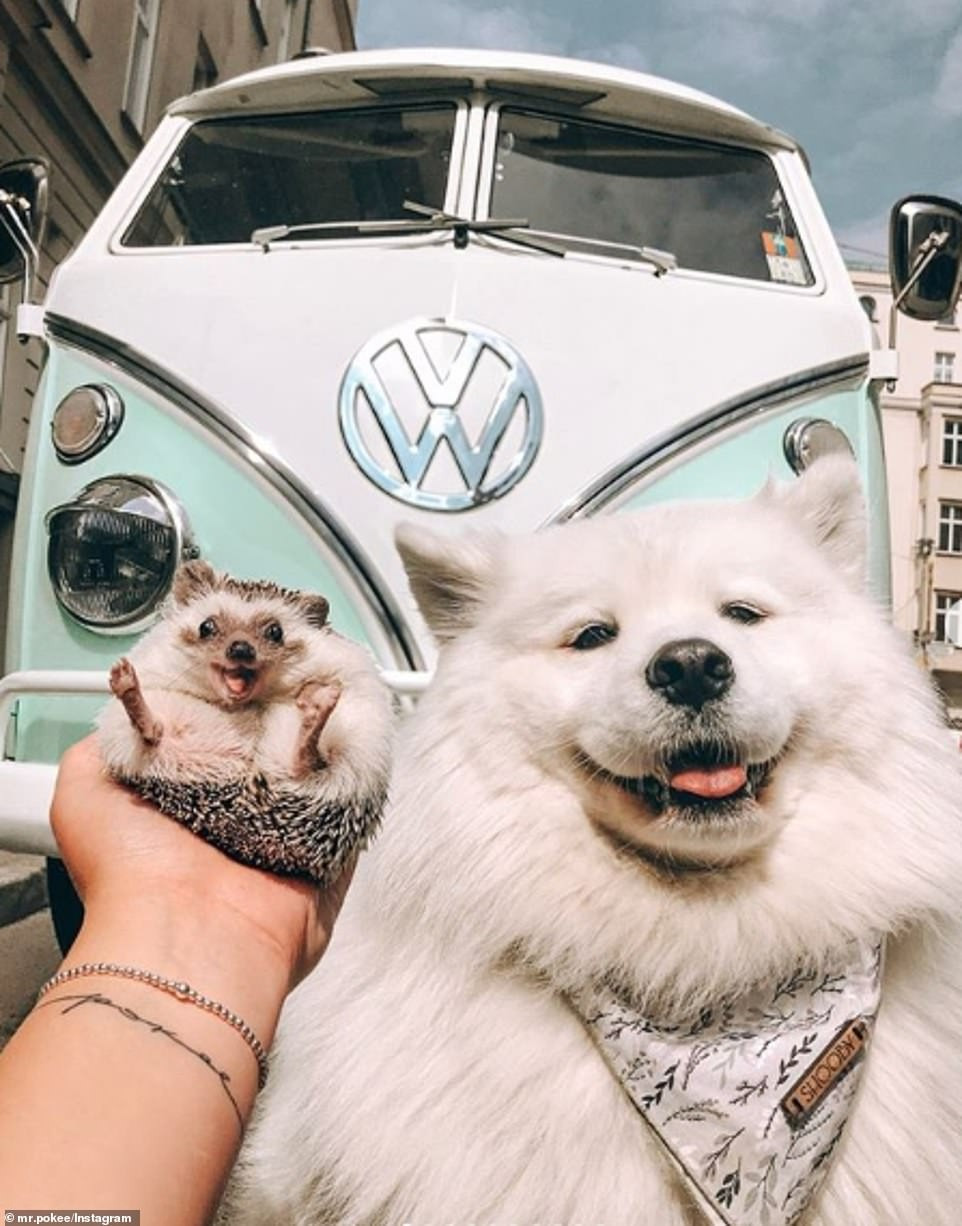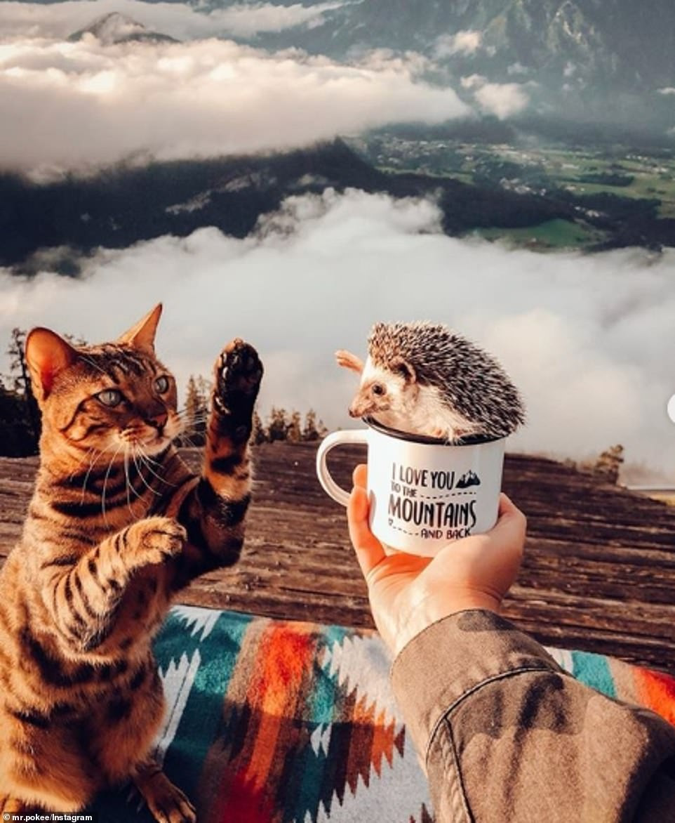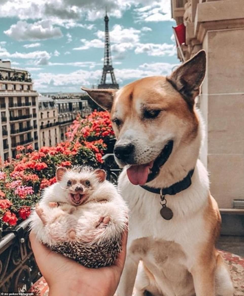 Stăpâna sa a postat de-a lungul timpului mai multe poze cu ariciul în timpul călătoriilor ei.