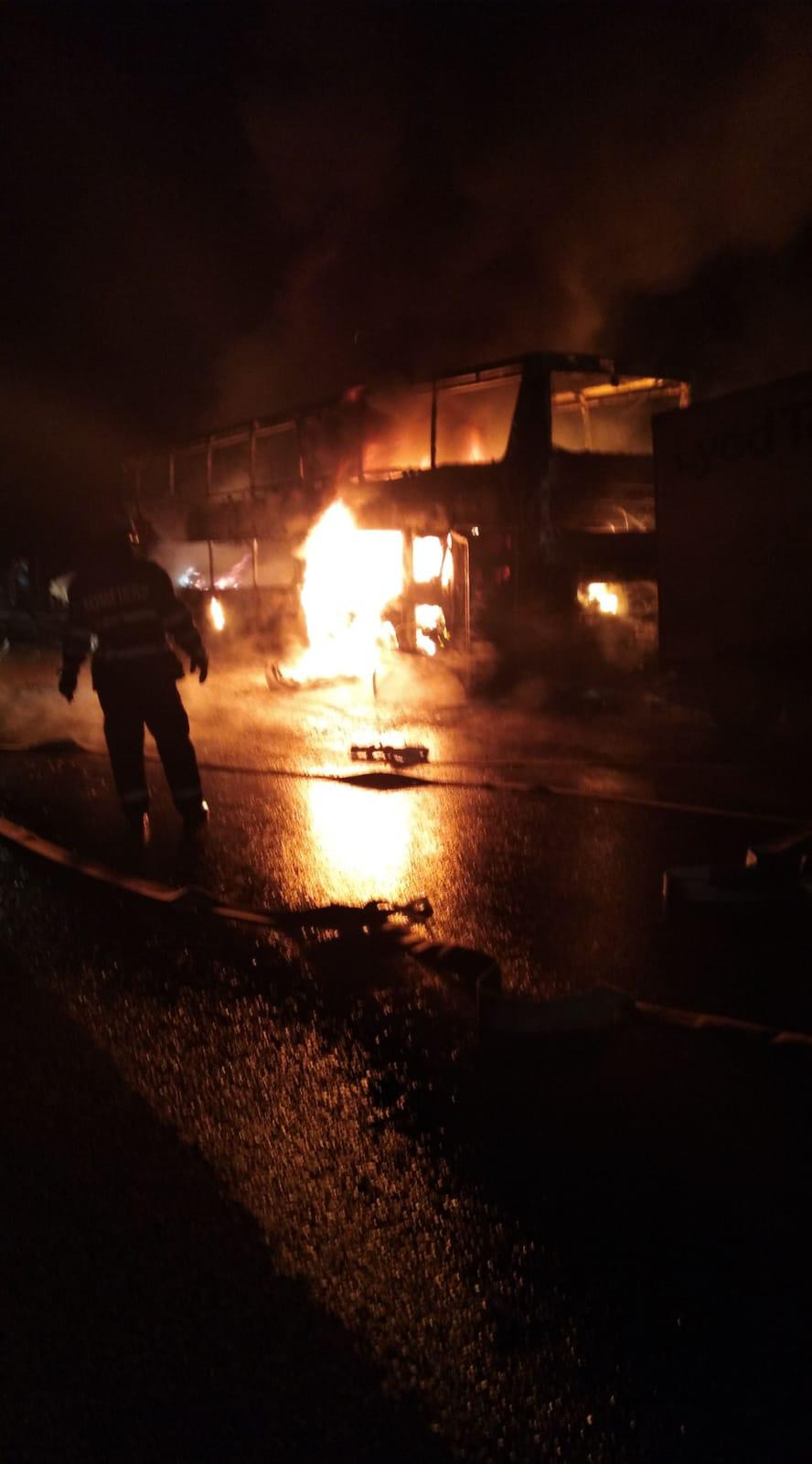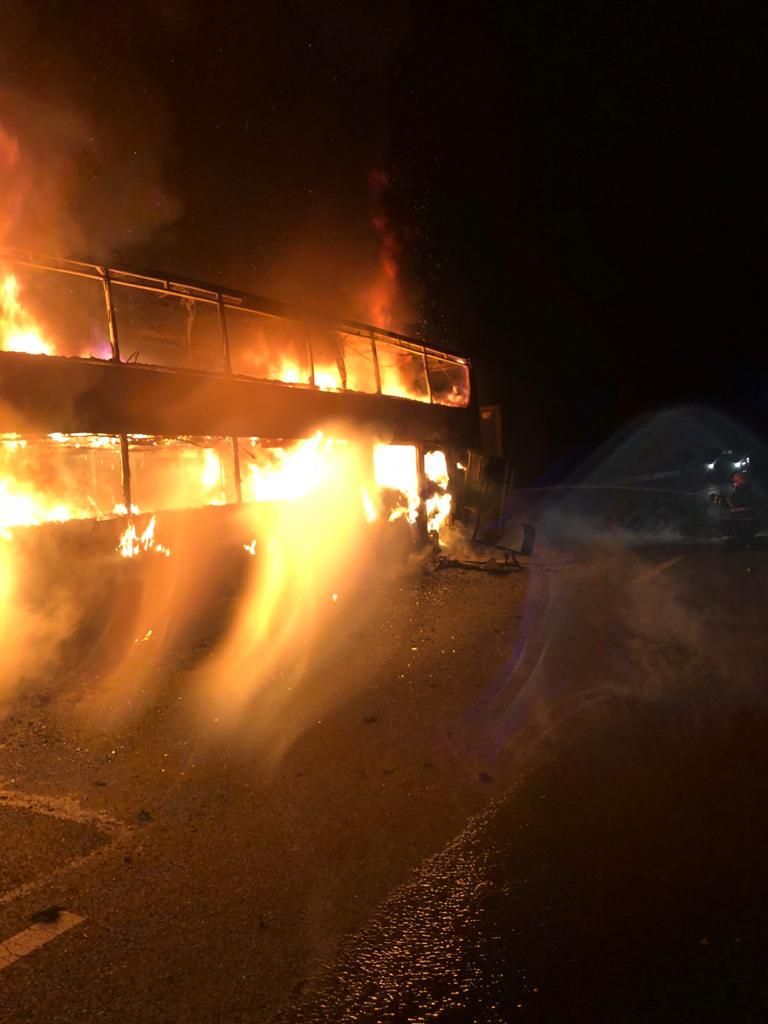 Un autocar în care se aflau 44 de pasageri, mistuit de flăcări pe A1. Nimeni nu a fost rănit