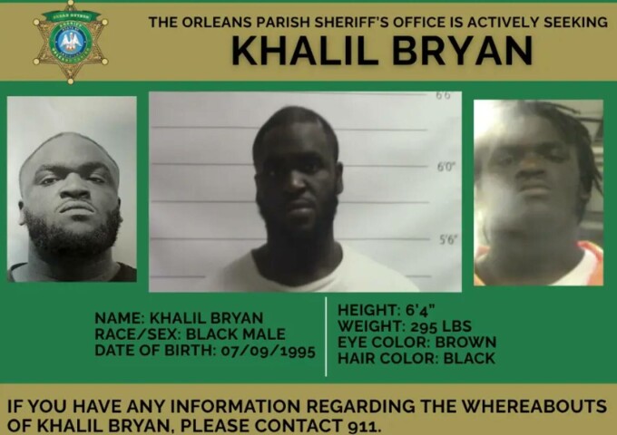 „Îndemnăm pe oricine are informații despre locul unde se află Khalil Bryan să contacteze imediat forțele de ordine”, a transmis Biroul Procurorului Parohiei Orleans.
