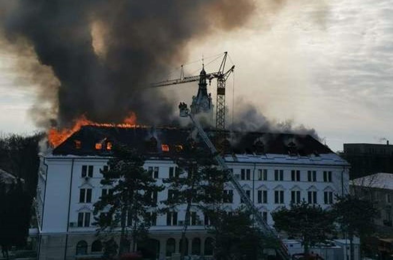 S-a dat alarma în zori la Suceava, unde un incendiu de proporţii a cuprins şi în final a distrus mare parte din Palatul Administrativ.