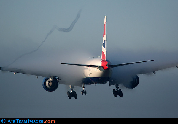 Tăierea aerului: Pe măsură ce avionul trece prin nori, presiunea aerului desparte norii, aşa cum se vede şi la acest Boeing 767