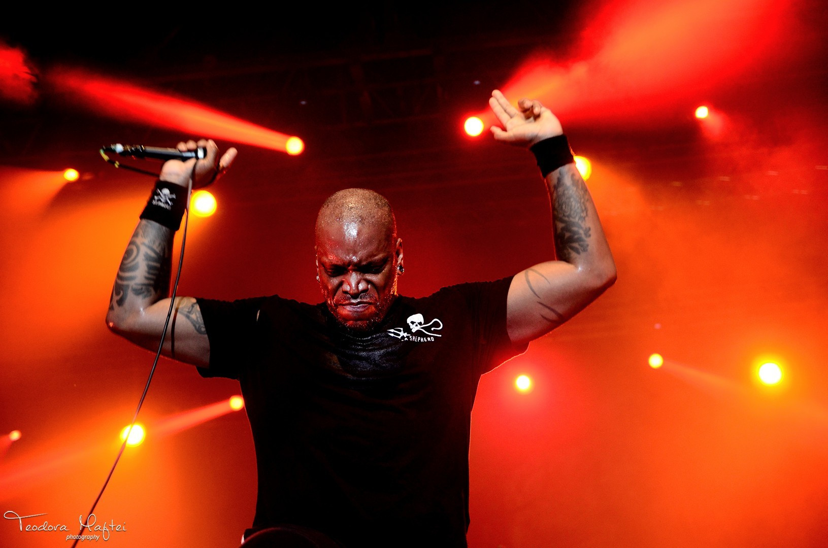 Cei mai curajosi si mai impatimiti rockeri au facut abstractie de caldura torida din Bucuresti si s-au “infratit” in cateva mosh pit-uri ad hoc, in vreme ce altii au uitat de gravitatie si au fost purtati pe brate de multime.