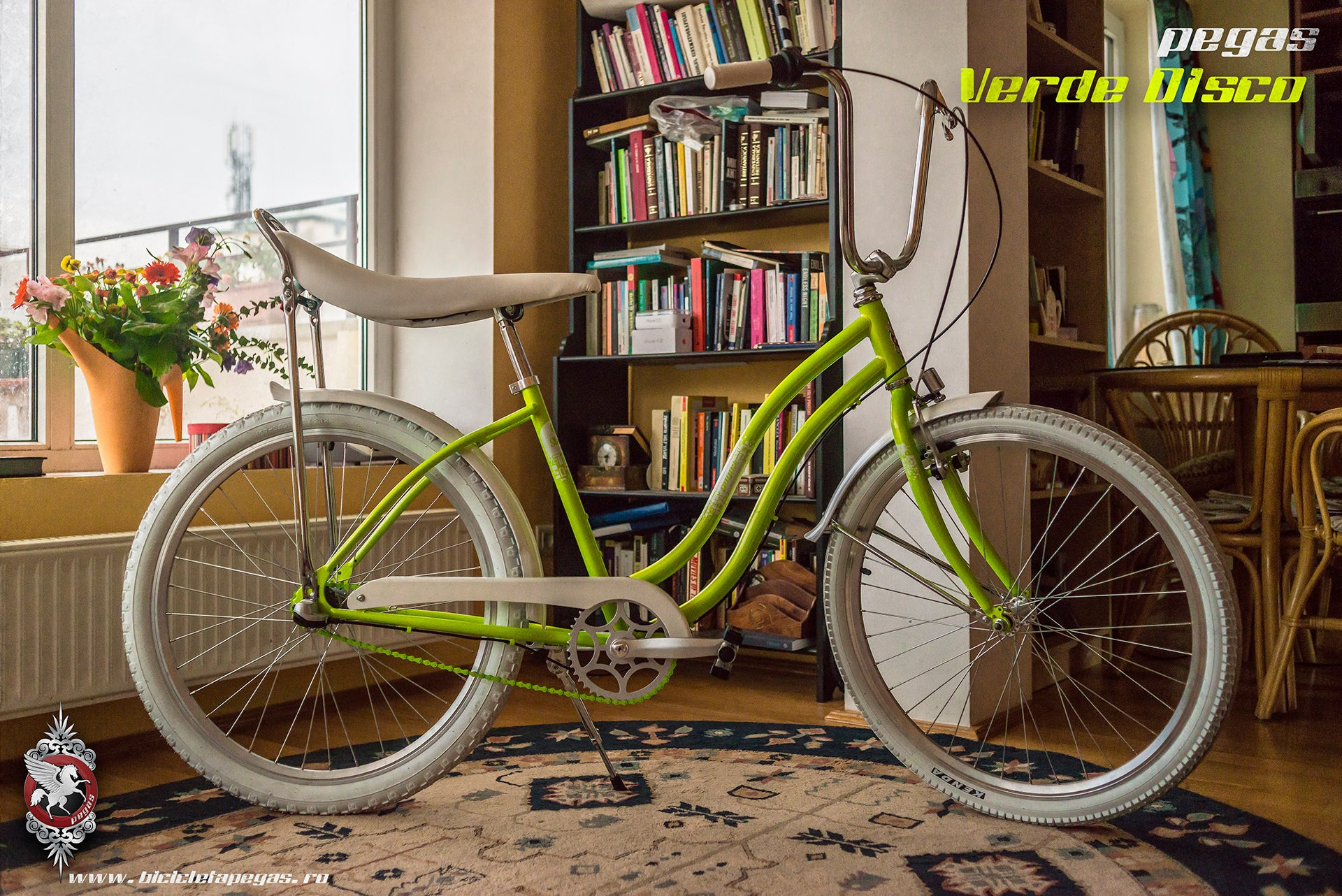 O a doua idee este că generaţia care a copilărit cu Pegas a crescut în înălţime şi greutate (unii chiar au 2 metri şi 120 de kg) şi că acum ne adresăm unui public între 25-45 de ani, şi nu unor copii (deşi Pegas este elixirul tinereţii sau acea mandala care te transpune instant la vîrsta de aur). Astfel că am înălţat Pegas-ul cu şa lungă de la roţi de 20’ la roţi de 26’.
