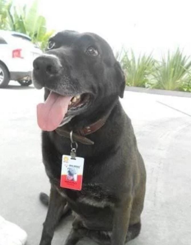 Sabrina l-a descoperit intr-o stare jalnica, plin de bube si purici. L-a pus insa pe picioare si apoi ... l-a angajat! I-a dat numele Negao iar labradorul are acum o slujba la benzinarie!
