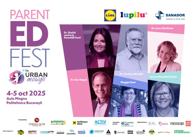 Cel mai mare eveniment de parenting din România, ParentED Fest, va avea loc pe 4-5 octombrie 2025, la București. Evenimentul, ajuns la ediția a doua, va reuni experți de talie mondială în domeniul creșterii și îngrijirii copiilor: Dr. Laura Markham, psiholog și autor de bestselleruri despre parentingul bazat pe conexiune; Dr. Shefali, psiholog clinician de talie internațională, care se întoarce la ParentED Fest pentru a doua oară, după succesul înregistrat la ediția de anul trecut; Dr. Gordon Neufeld, psiholog specializat în dezvoltarea copilului și pionier în domeniul atașamentului; Maggie Dent, expert recunoscut în parenting și autoare de cărți despre dezvoltarea echilibrată a copiilor; Tamara Neufeld Strijack, terapeut și autor, și Dr. Daniel Siegel, neuropsihiatru de renume mondial și pionier în integrarea neuroștiinței cu psihologia.