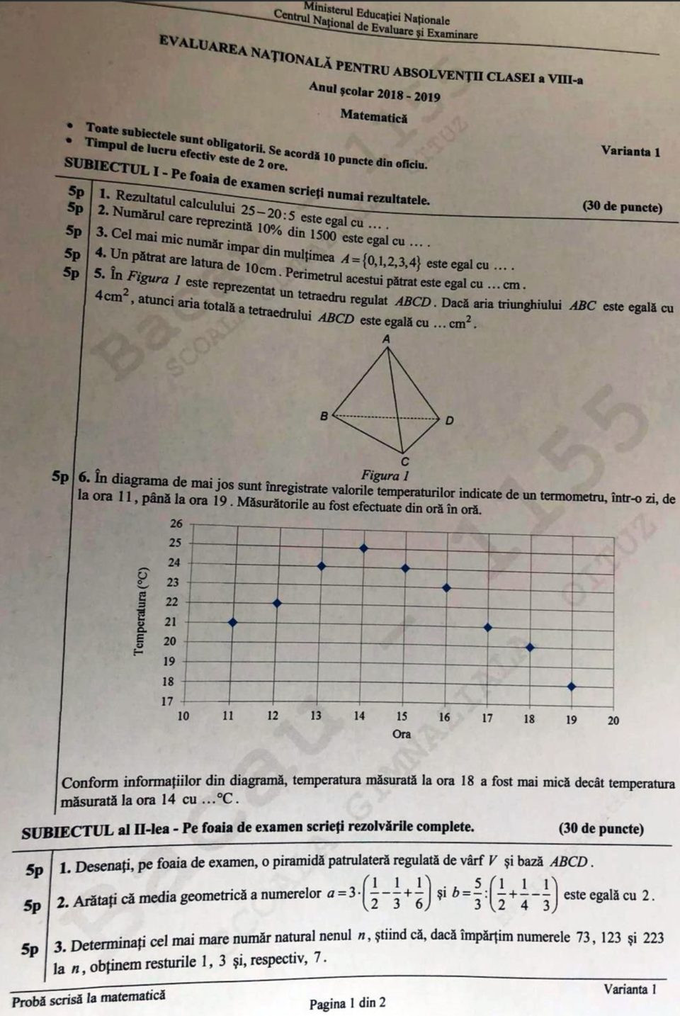 Evaluarea Națională 2020. Ce subiecte au picat la matematică în 2019