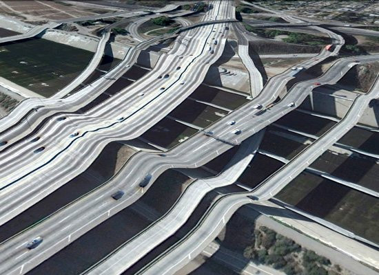 Fotografiile sunt de-a dreptul spectaculoase, podurile si autostrazile se vad alungite, cu multe denivelari, in timp ce podurile coboara in prapastii sau ape.