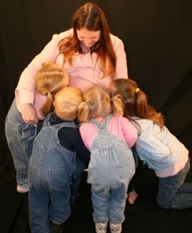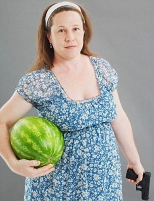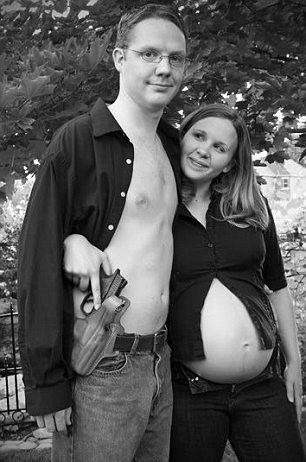 Printre ele, o femeie care si-a transformat burta intr-o minge de baschet, un cuplu in care dimensiunile abdomenului sotului sunt comparabile cu sarcina inaintata a sotiei sau – cea mai iesita din comun – o femeie care pozeaza insarcinata, cu un pepene intr-o mana si un pistol in cealalta.