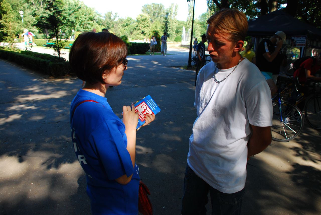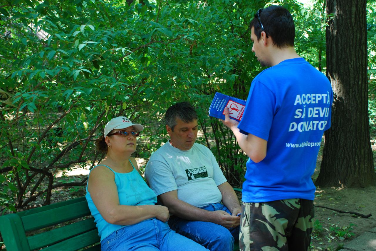 "Romania are nevoie de registrul donatorilor onorifici!" Asta a incercat sa le explice duminica bucurestenilor Mihaela Petrea, o tanara care a supravietuit cancerului datorita unui transplant cu celule stem, prelevate de la sora ei.