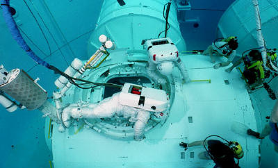 Una dintre cerinte este ca astronautii sa stie foarte bine sa inoate. Ei vor fi rugati sa parcurga inot trei lungimi de bazin de 25 de metri, fara oprire. Daca trec de acesta proba, vor trebui sa inoate aceeasi distanta... intr-un costum de zbor si incaltati cu pantofi de tenis.