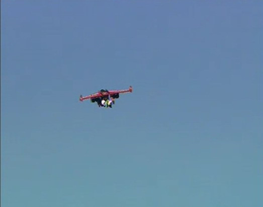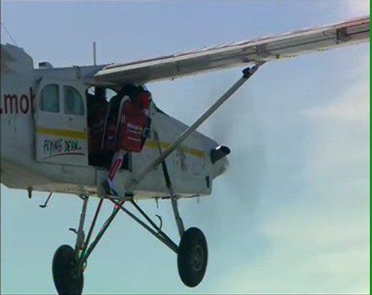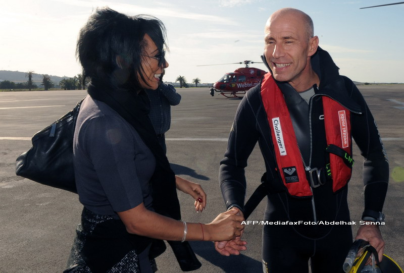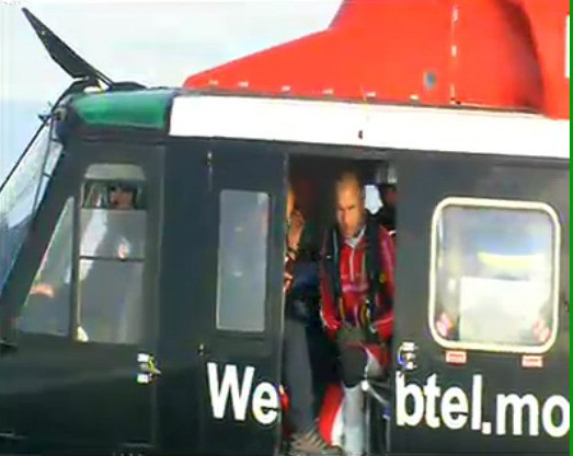 Insa, la un moment dat, Rossy parea ca fusese inghitit de nori. Pana la urma a fost reperat, cu tot cu parasuta, in apele Mediteranei, de unde a fost ridicat la bordul unui elicopter.