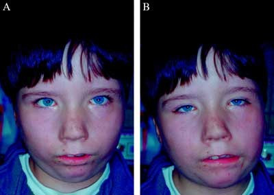 4. Sindromul Moebius (foto 4) - este denumirea data unei boli neurologice congenitale rare, a carei caracteristica clinica este paralizia faciala periferica. Exista in jur de 80 de cazuri documentate in Spania si 200 in Anglia. In Europa se nasc cu acest sindrom aproximativ 300 de copii in fiecare an.Cauzele producerii lui sunt inca necunoscute. Oamenii care se nasc cu acest sindrom nu au expresii faciale deoarece nervii faciali nu sunt dezvoltati. Ei nu pot zambi, nu se pot incrunta, nu isi pot misca ochii in lateral si nu isi pot controla pleoapele. Uneori sunt gasiti dormind cu ochii deschisi. Intampina mari probleme in alimentatie si in alte activitati care necesita muschii faciali.