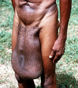 7. Elephantiasis (foto 7) - aceasta boala afecteaza 120 de milioane de oameni pe plan mondial si este cauzata de viermii paraziti, dar transmisa de tantari. Cand o femela tantar infectata inteapa un om, aceasta ii si injecteaza viermele (Wuchereria, Brugia), care foloseste corpul ca si gazda pentru foarte multi ani. Persoana infectata nu simte nimic decat dupa mult timp, iar cele mai intalnite simptome sunt cresterea excesiva a membrelor. In unele zone ale Etiopiei cam 6% din populatie sufera de aceasta boala. Este una dintre cele mai intalnite malformatii.