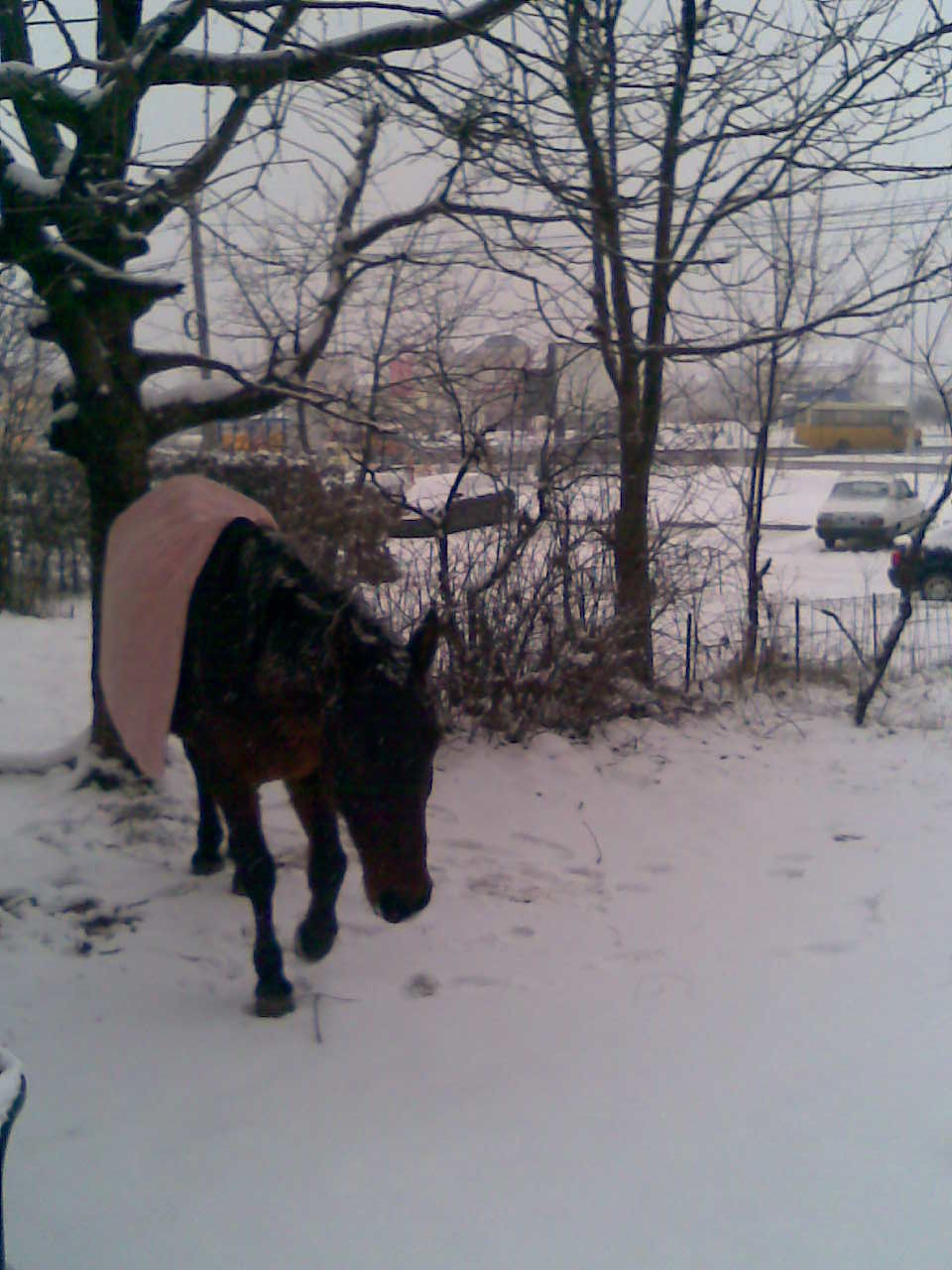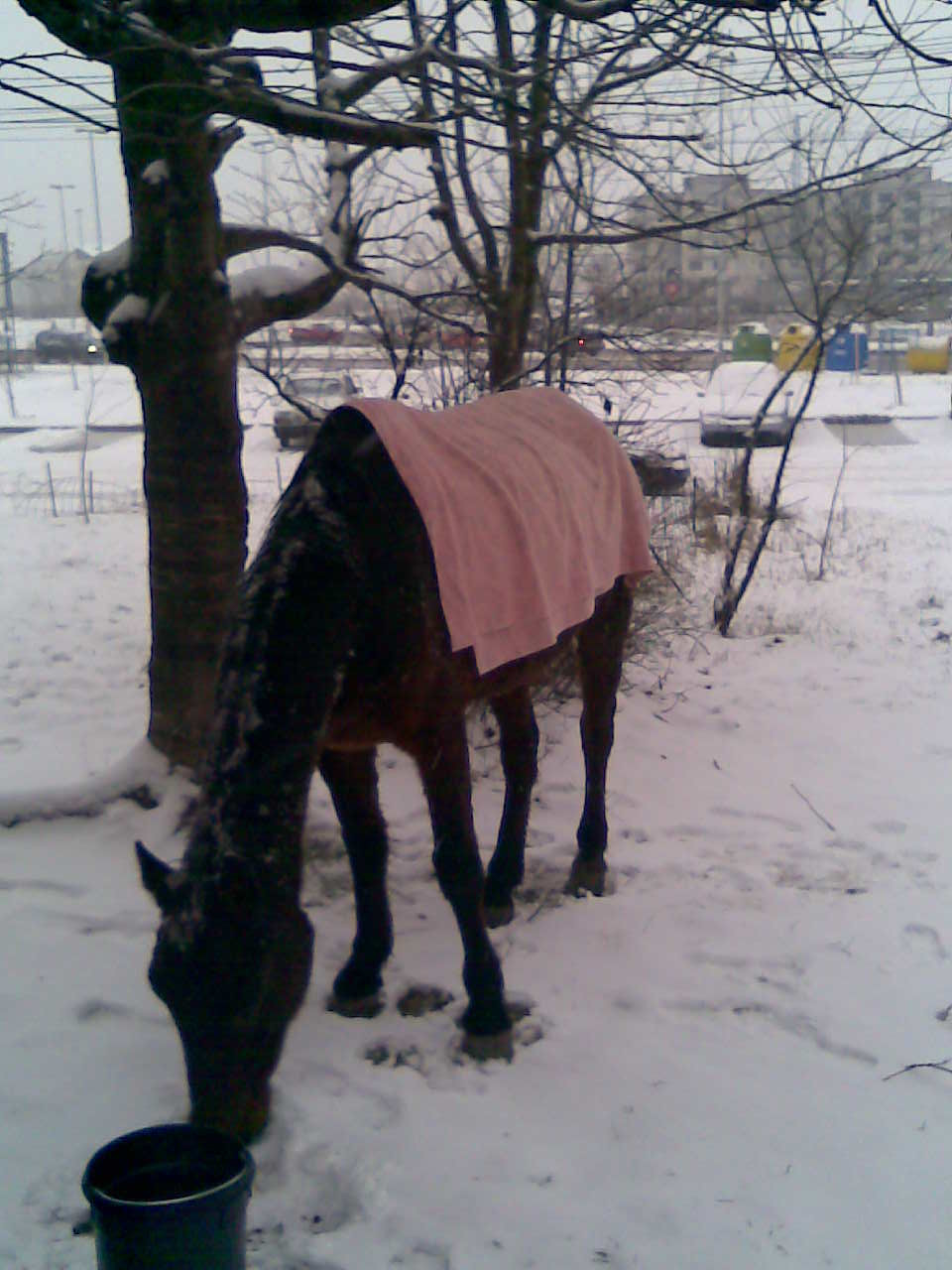 Abandonat cel mai probabil din cauza saraciei, calul este lasat la marginea drumului si mai traieste numai datorita trecatorilor, care l-au acoperit si i-au oferit ceva de mancare.
