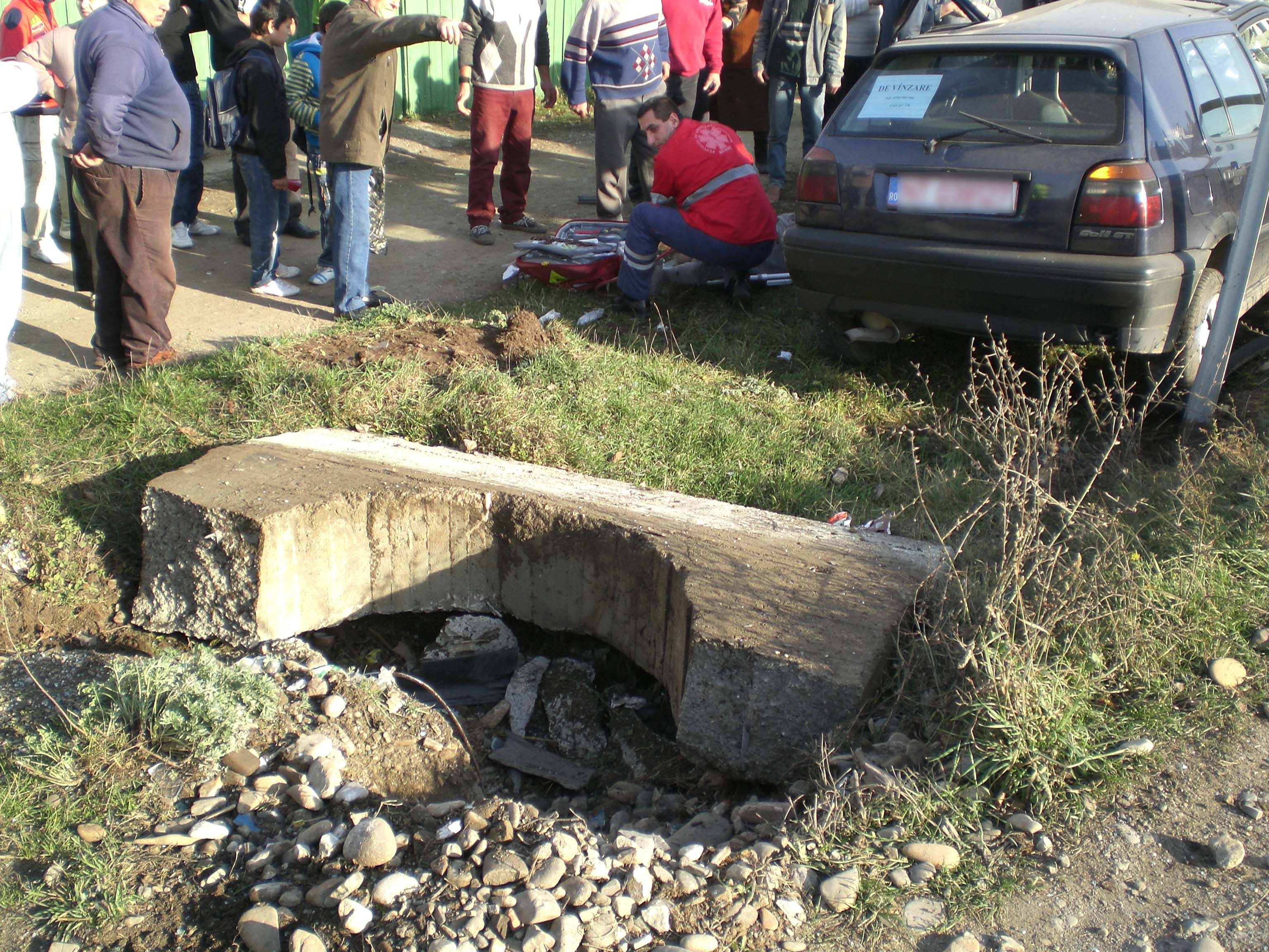 Impactul a fost devastator - autoturismul a fost proiectat intr-un cap de pod, pe care l-a rupt, iar apoi a ajuns in sant. Soferul masinii a decedat la spital, la aproximativ o ora de la producerea accidentului. O tanara de 18 ani, aflata in autoturism, a fost ranita usor.