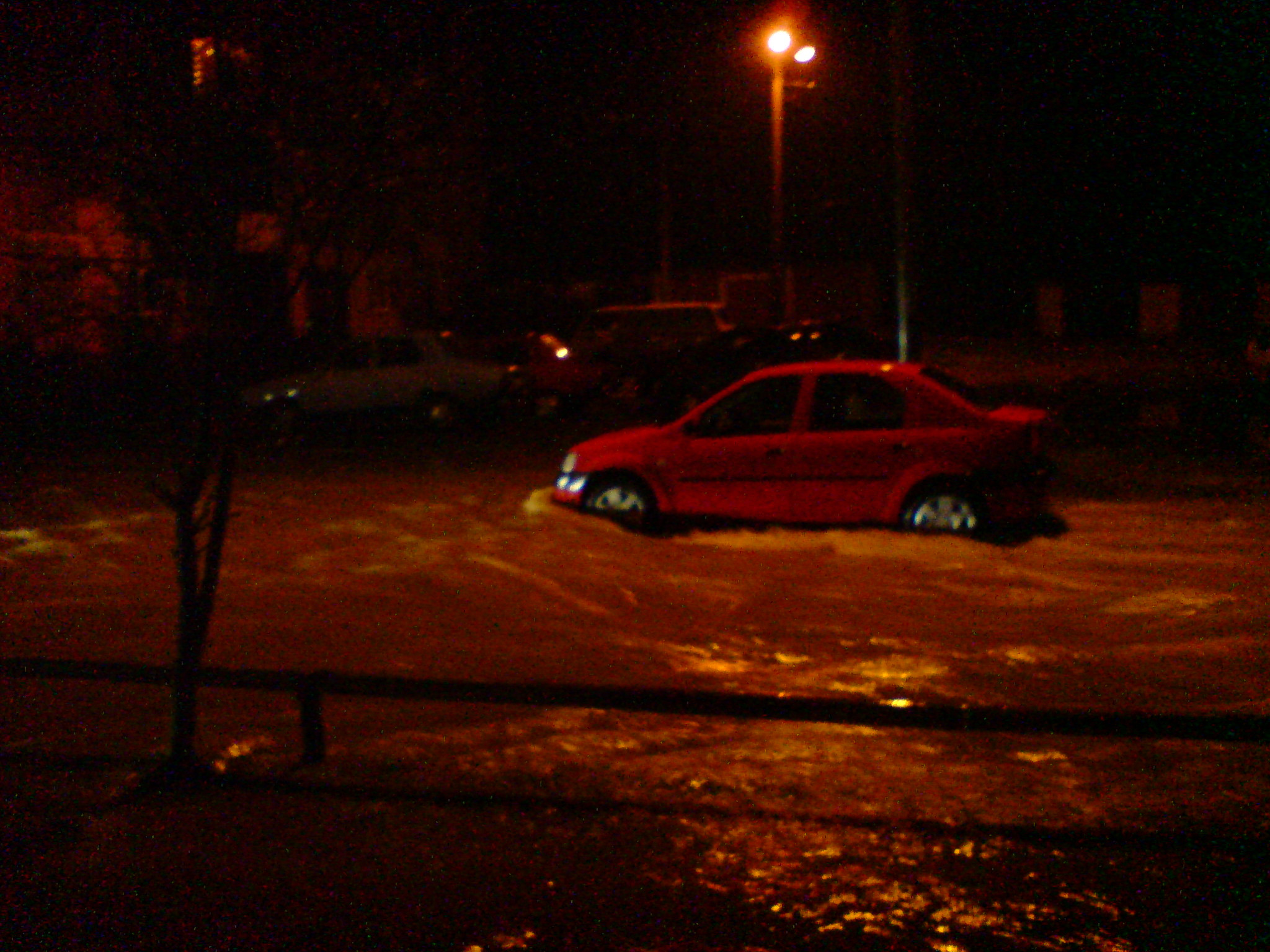 Potopul a lovit si in Baia Mare, unde strazile unui cartier au fost acoperite de ape. Masinile abia mai circulau joi dimineata, iar oamenii care s-au incumetat sa iasa la cumparaturi au avut nevoie de cizme.