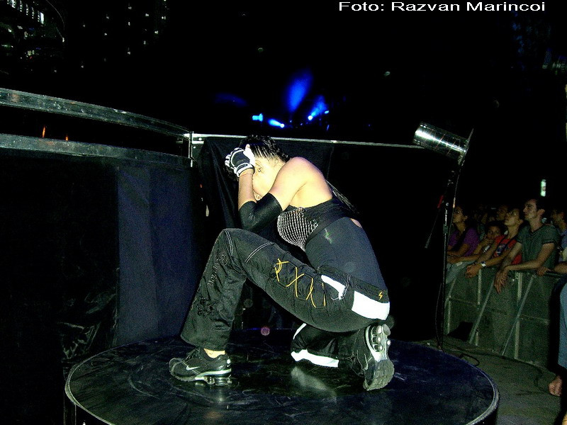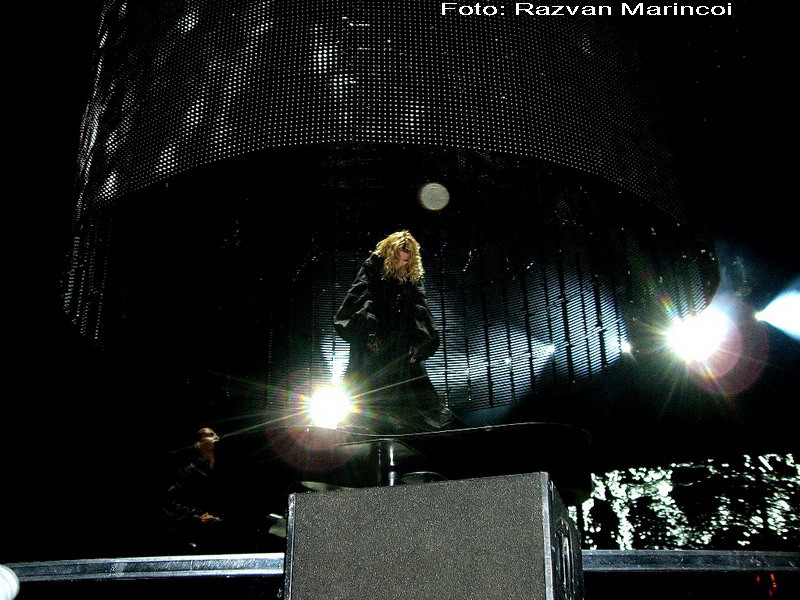 Madonna, imbracata intr-un costum complet negru, cu breton si ochelari, se misca frenetic, inconjurata de dansatori. La un moment dat, s-a aruncat pe burta si le-a intins microfonul fanilor din primul rand. Diva era atat de aproape incat daca intindeau mana unii dintre ei puteau chiar sa o atinga. Nimeni nu a indraznit insa... Probabil si de frica masurilor draconice de securitate luate.