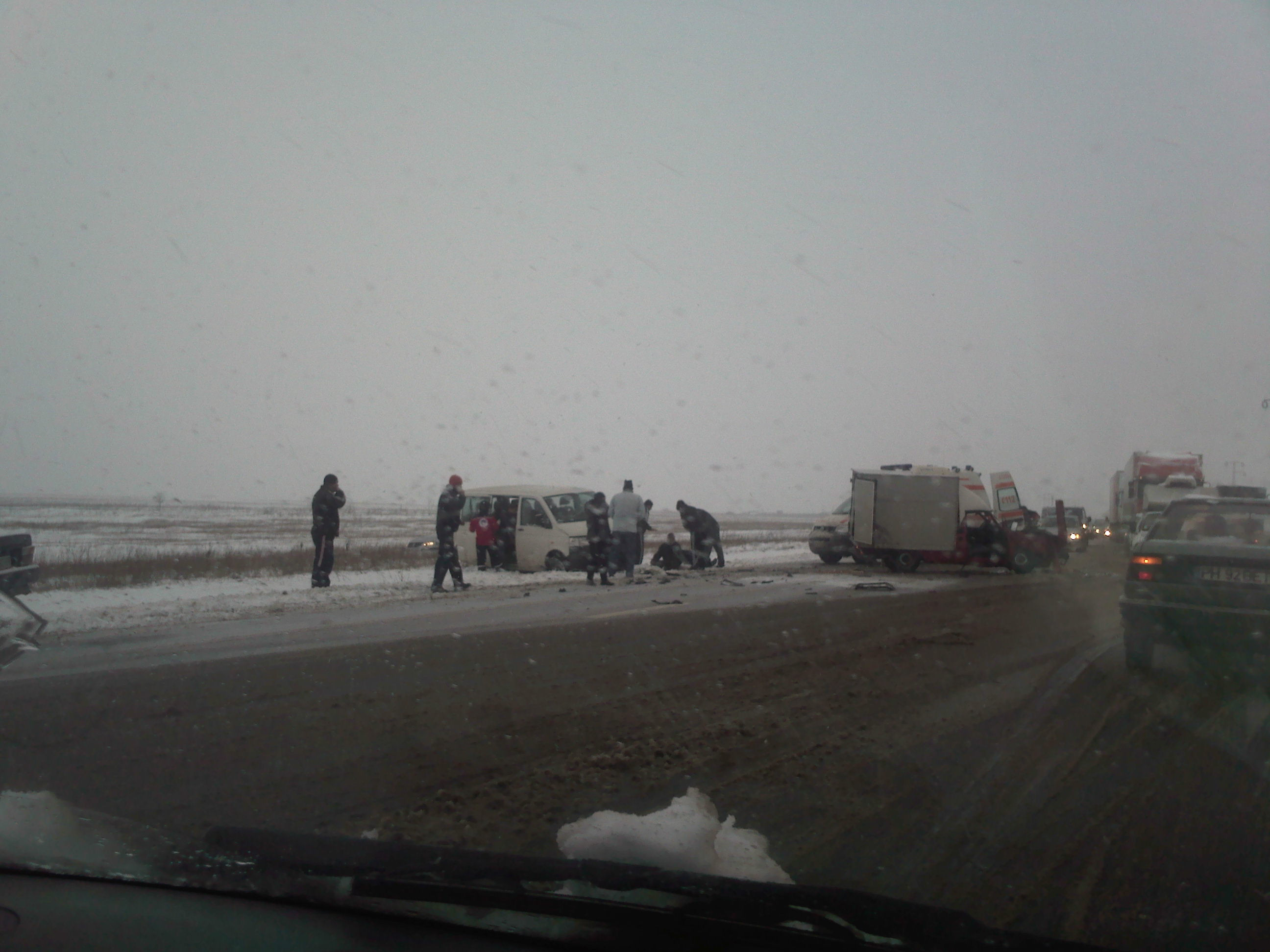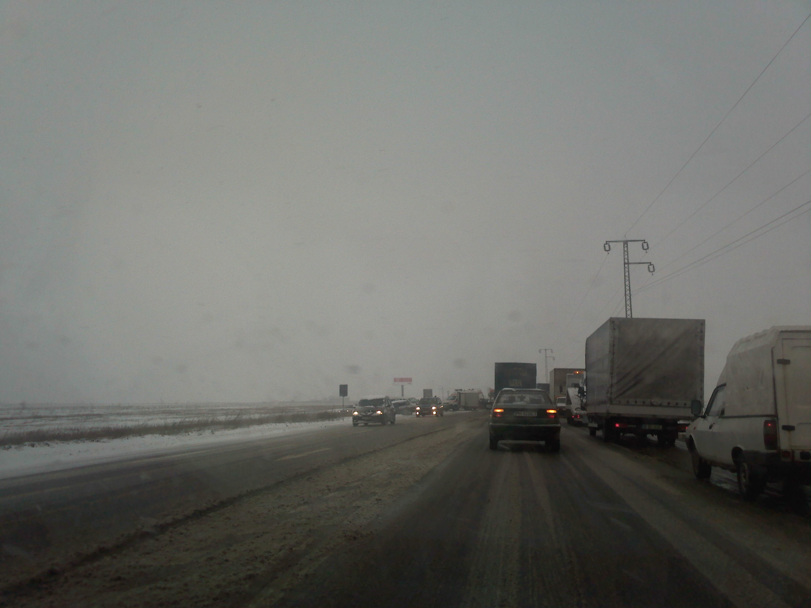 "Miercuri, la ora 3.40 se afla blocata in trafic la 40 de km de Buzau. Drumul este blocat in ambele sensuri de mers. Sunt oameni obositi, nervosi si panicati de toata situatia disperata in care se afla. Am sunat la 112 si nici o veste incurajatoare. Situatia se cunoaste. Trei drumuri din zona Urziceni sunt blocate".