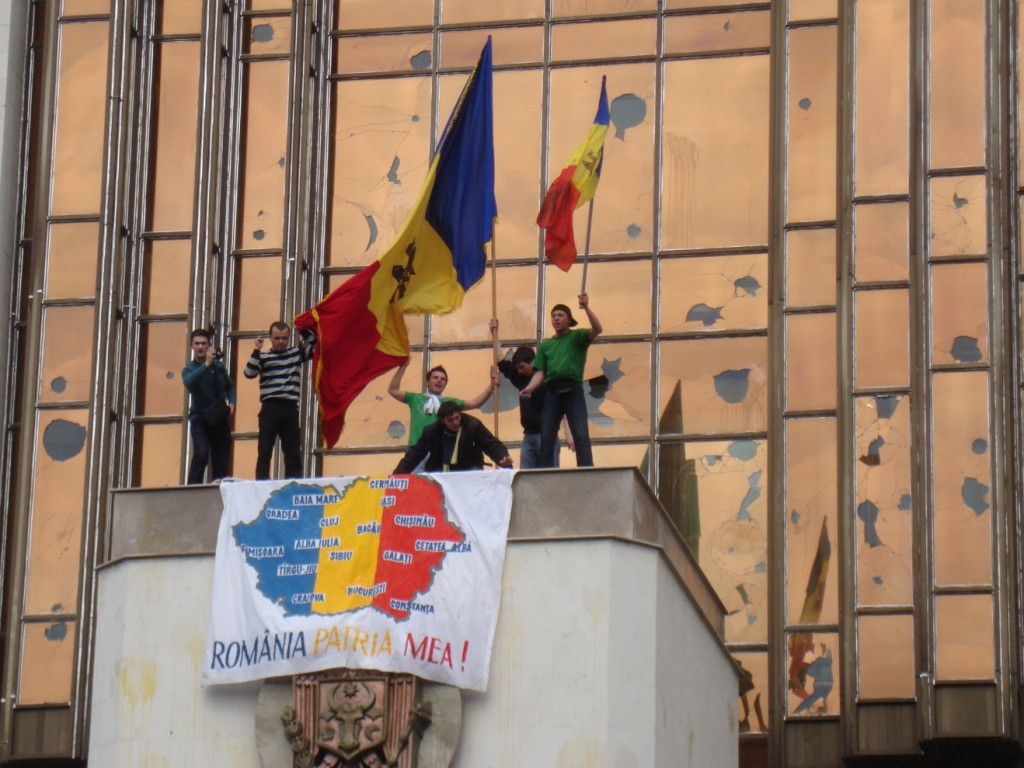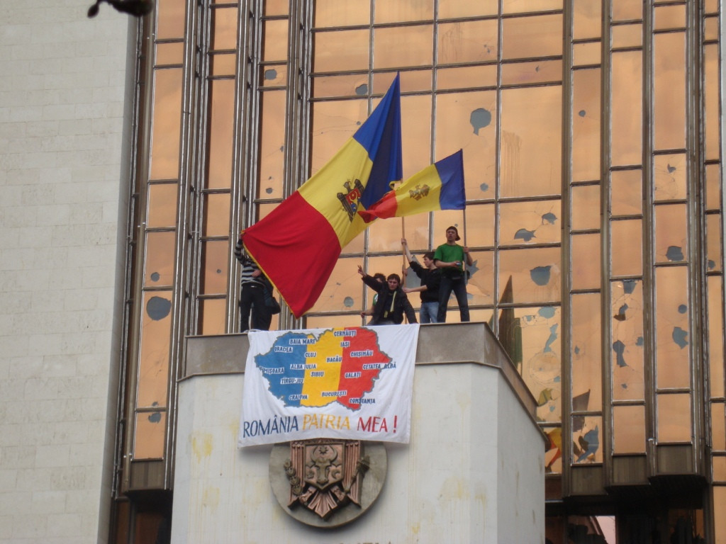 Ion Mardarovici, un utilizator al www.stirileprotv.ro, ne-a trimis imagini cu protestele din Republica Moldova. Protestatarii au arborat steaguri cu mesajul "Romania, patria mea!".