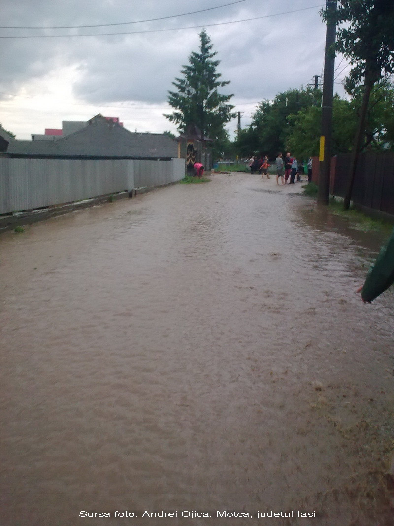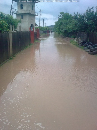 Situatia nu a fost mai linistita nici in Falticeni sau Motca, judetul Iasi. Strazi intregi si mai multe terenuri agricole au fost acoperite de ape.