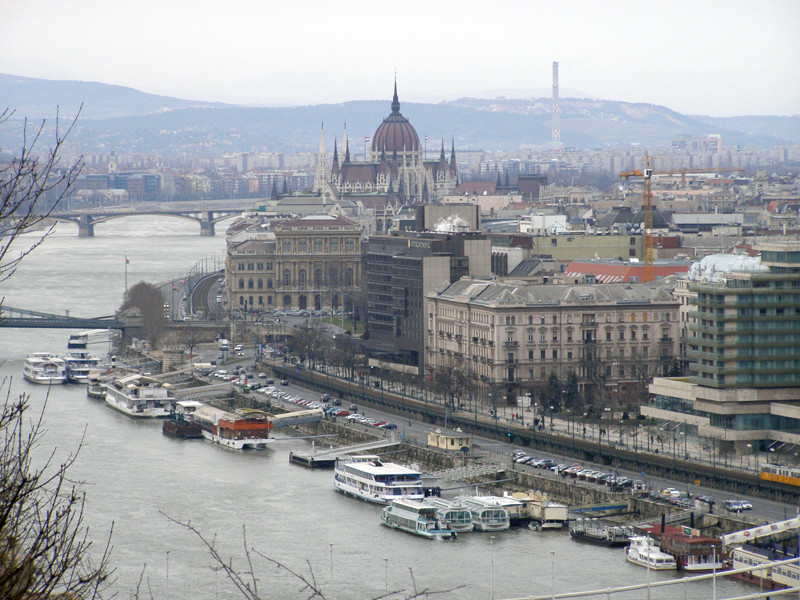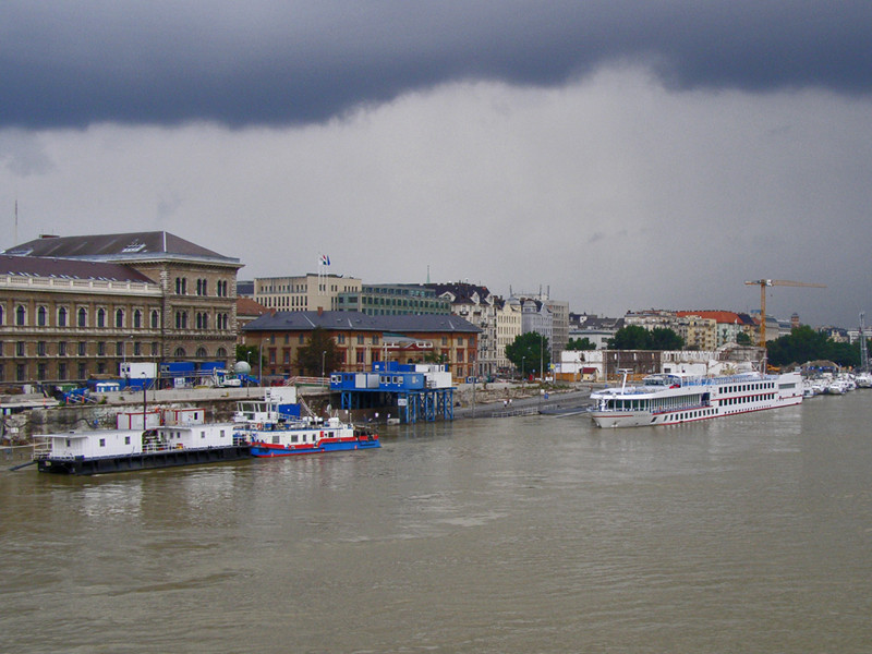 Pe malul drept al fluviului, Buda isi inalta colinele-i incarcate de farmecul unei istorii milenare; pe malul stang, Pesta se desfasoara, cu bulevardele-i largi, marginite de cladiri impunatoare si frematand de viata agitata a metropolei. Pe sub podurile trepidand de goana automobilelor sau tramvaielor, vaporasele de croaziera aluneca usor pe valurile Dunarii albastre.