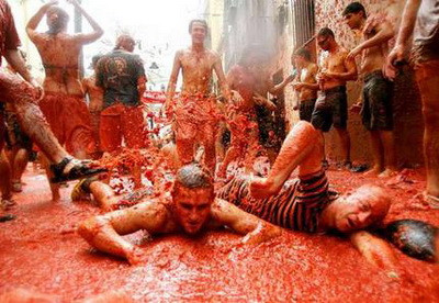 Tomatina este si sarbatoare si lupta intre spaniolii din Bruno, care se bat cu rosii. Anual sosesc zeci de mii de oameni dornici sa se bata cu rosii.
