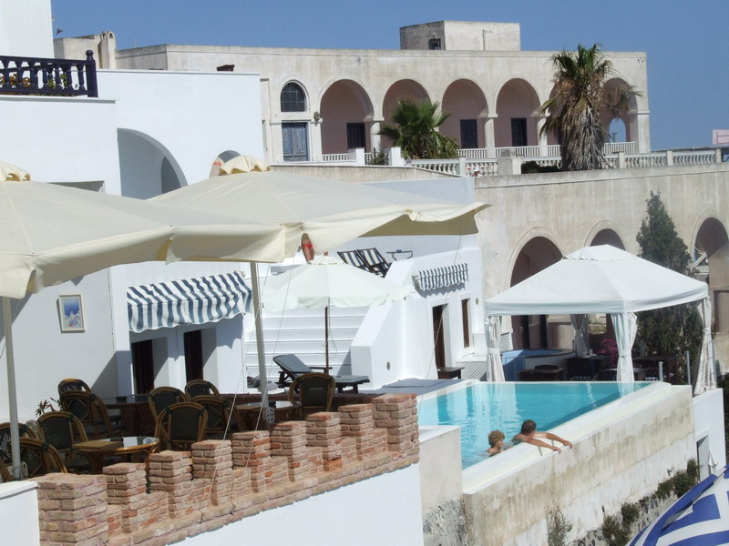 Cat despre realitatea care-l doare pe turist... Un mare plus il constituie serviciile oferite de greci. Impecabile! M-am cam ofticat eu ca m-au trimis in camera sa-mi pun pantaloni lungi pentru cina - un 'must' ce tine de eticheta, acolo - dar...m-am supus regulilor. Mancarea....n-ai cum sa te plictisesti de ea. Ba italiana, ba greceasca, ba meditaraneana. Neaparat, de incercat tocanita de midii in suc de rosii si peste spada. A, da. Si feta lor cu alune. De exceptie.