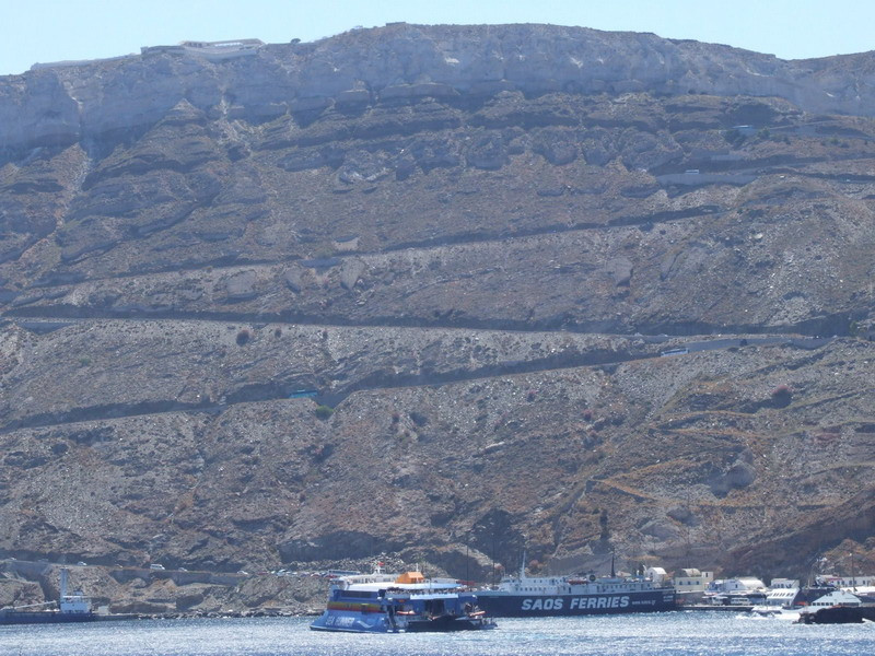 Nu uita sa tragi de cel care te duce acolo sa te lase sa vezi apusul deasupra vulcanului. E ceva unic, se zice. Din "pacate", noi l-am prins de pe mare. Si...daca esti mai usurel asa, poti incerca un taxi eco: un magarus, adica, ce te va cobori de pe platoul din Fira pana in port, scara cu scara, pentru numai 2 euro. Altfel, gondolele sa traiasca. 3 euro si ele.
