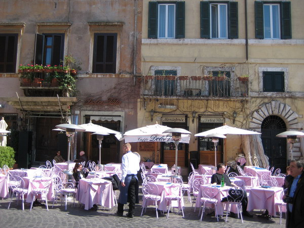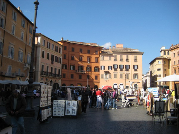 Piazza Navona. Este locul ideal pentru a face o plimbare la finalul zilei. Cele mai multe terase pe metro patrat, multe lume, pictori, gata oricand sa iti faca un portret pe loc, cantareti, dansatori de step, oameni care stau nemiscati precum statuile. Este locul ideal pentru a manca ceva bun din bucataria italiana. O portie de paste este in jur de 12-15 euro, o bere consta in jur de 9 euro, iar un platou cu fructe de mare costa cam 25 de euro.