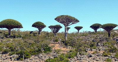 E cald in Socotra, iar clima uscata nu e deloc prietenoasa. Plantele care traiesc aici sunt si ele unele aparte. Sunt specii care vechi de peste 200 de ani si pe care nu le mai gasesti nicaieri in lume. Samanii si vracii isi procurau de aici rasini speciale, din copacul Sangele Dracului, pe care le preparau apoi in diverse potiuni, medicamente si alte preparate.