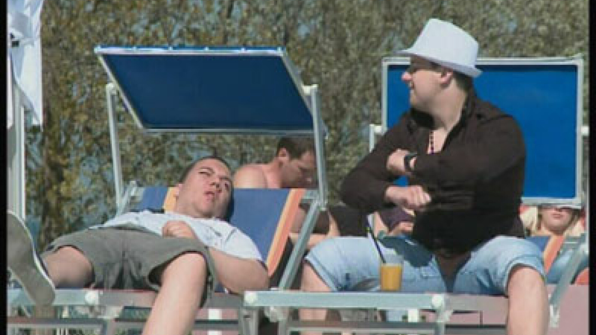 Pe lumina, fetele si-au schimbat rochitele de disco si au etalat costumele de baie, cu tocuri inalte si palarii cu boruri largi. Ei, in schimb, au incercat sa se dezmorteasca.