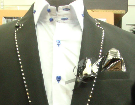 Costumul R. Jewels Diamond Edition are 480 diamante cu o taietura, fiecare avand cate 0,5 carate. Costumul este din lana de casmir si matase.