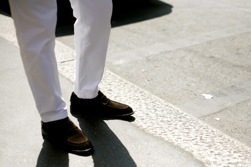 Sosete? Cel mai simplu este să nu porti sosete deloc. Nu uita sa alegi o lenjerie intima de culoare mai deschisă sau chiar alba. Si inca ceva: poti rula pantalonii la baza. E chiar cool sa scoti in evidenta glezna.