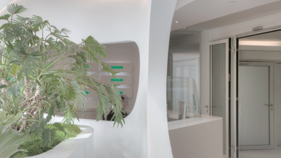 Alb imaculat, spatii foarte deschise si mobilier parca desprins din desenele animate cu "The Jetsons". Asa arata sediul unei mari companii nemtesti.